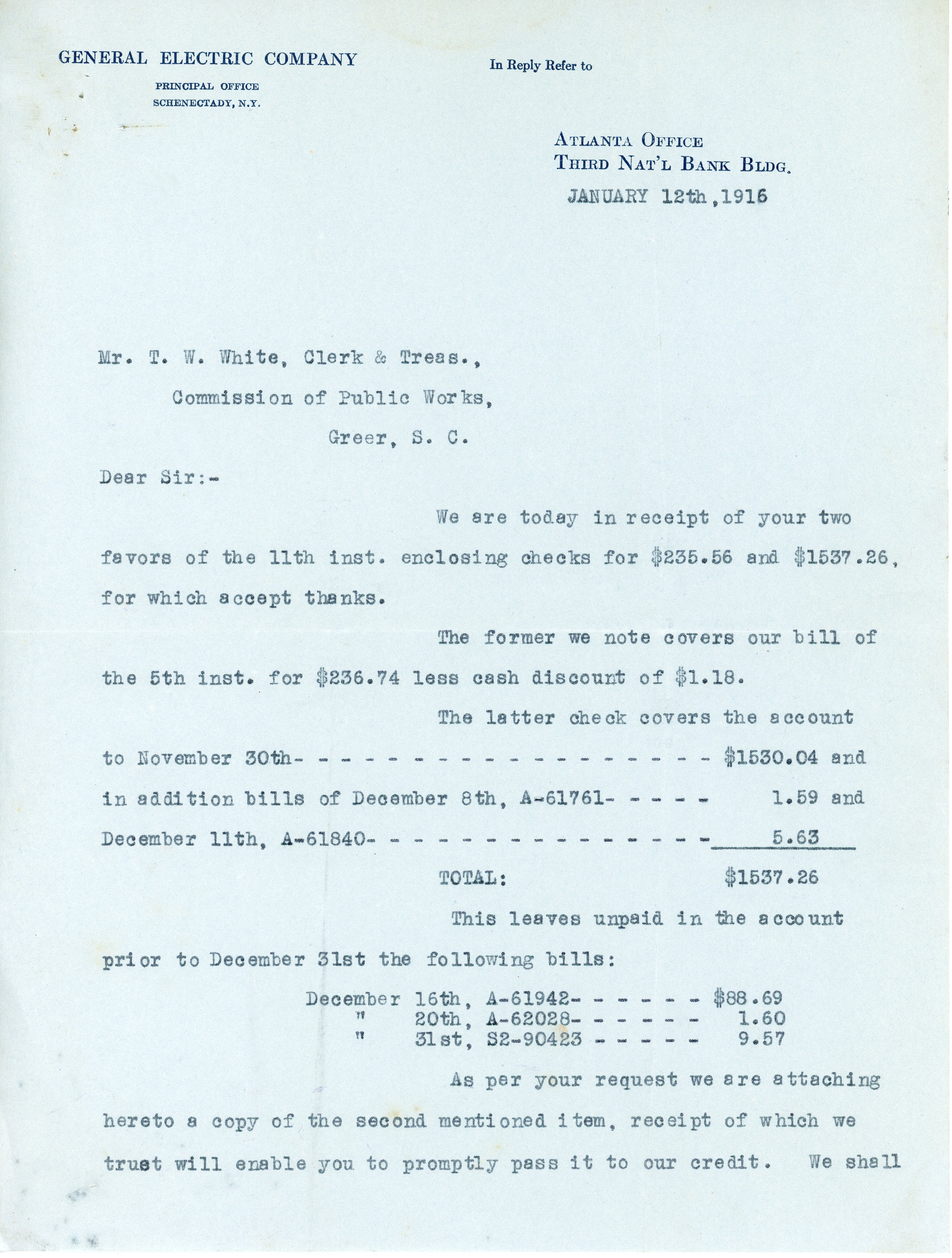 - Letter 12 January 1916 J. V. A. [illegible] to T. W. White