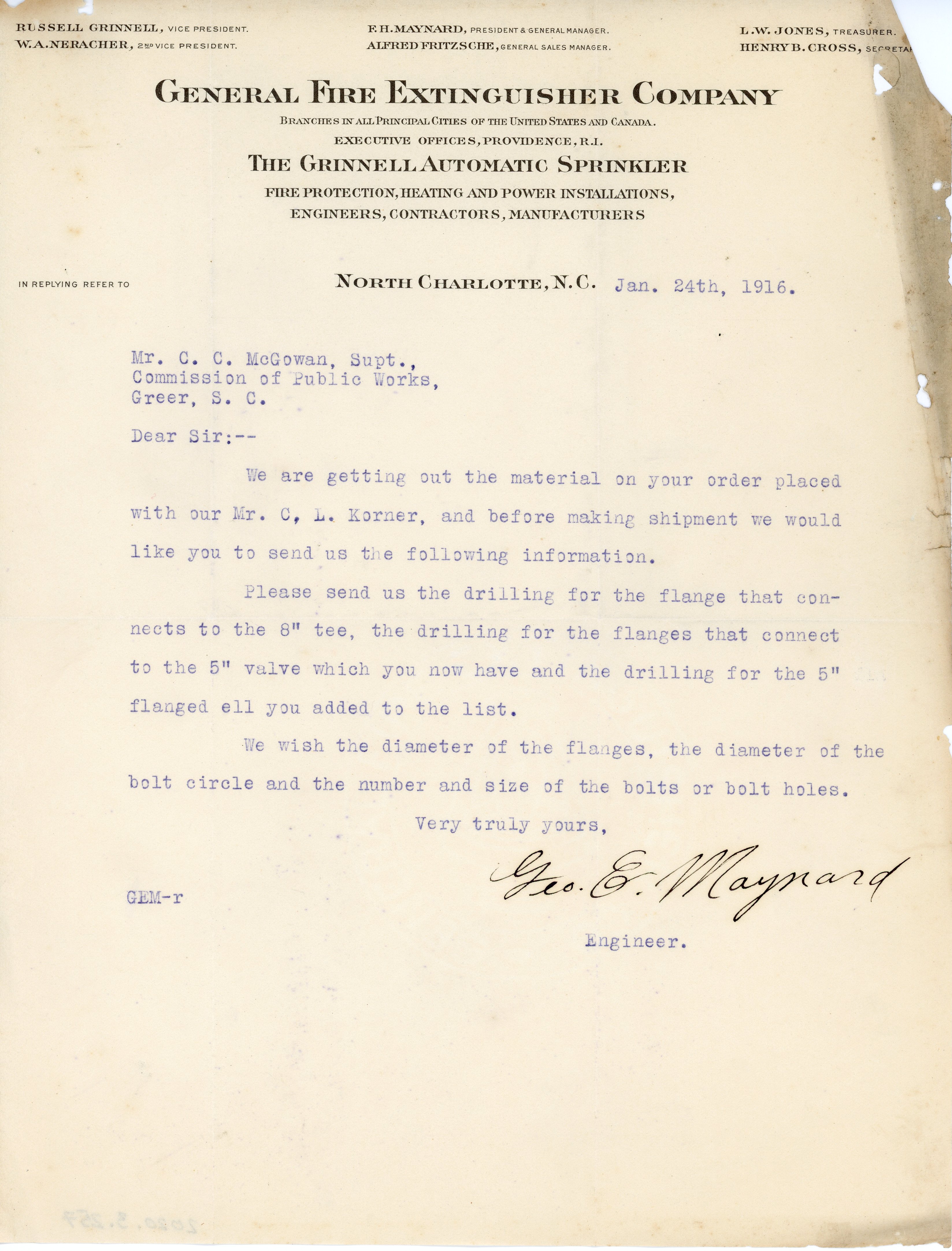- Letter 24 January 1916 G. E. Maynard to C. C. McGowan