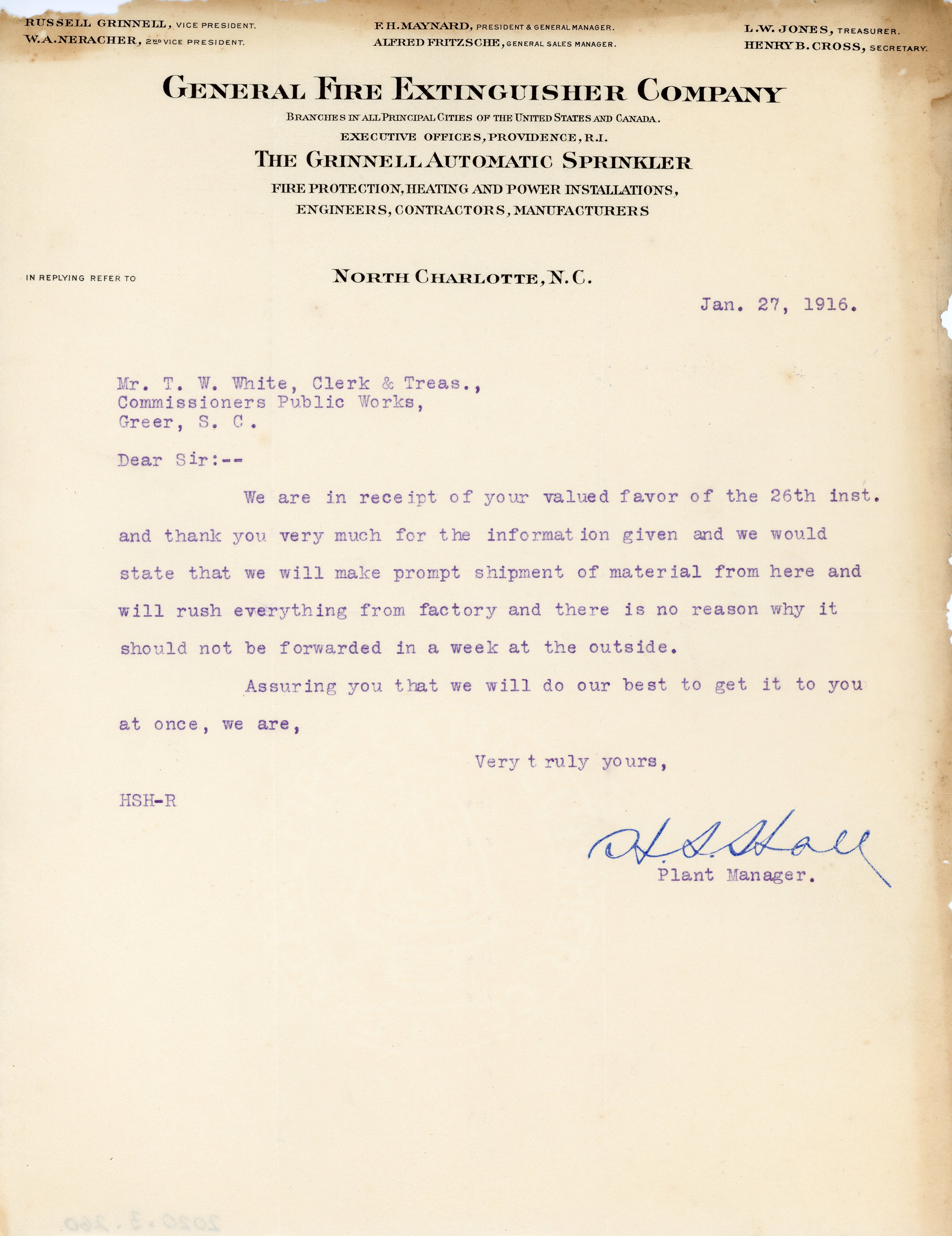 - Letter 27 January 1916 H. S. Hall to T. W. White