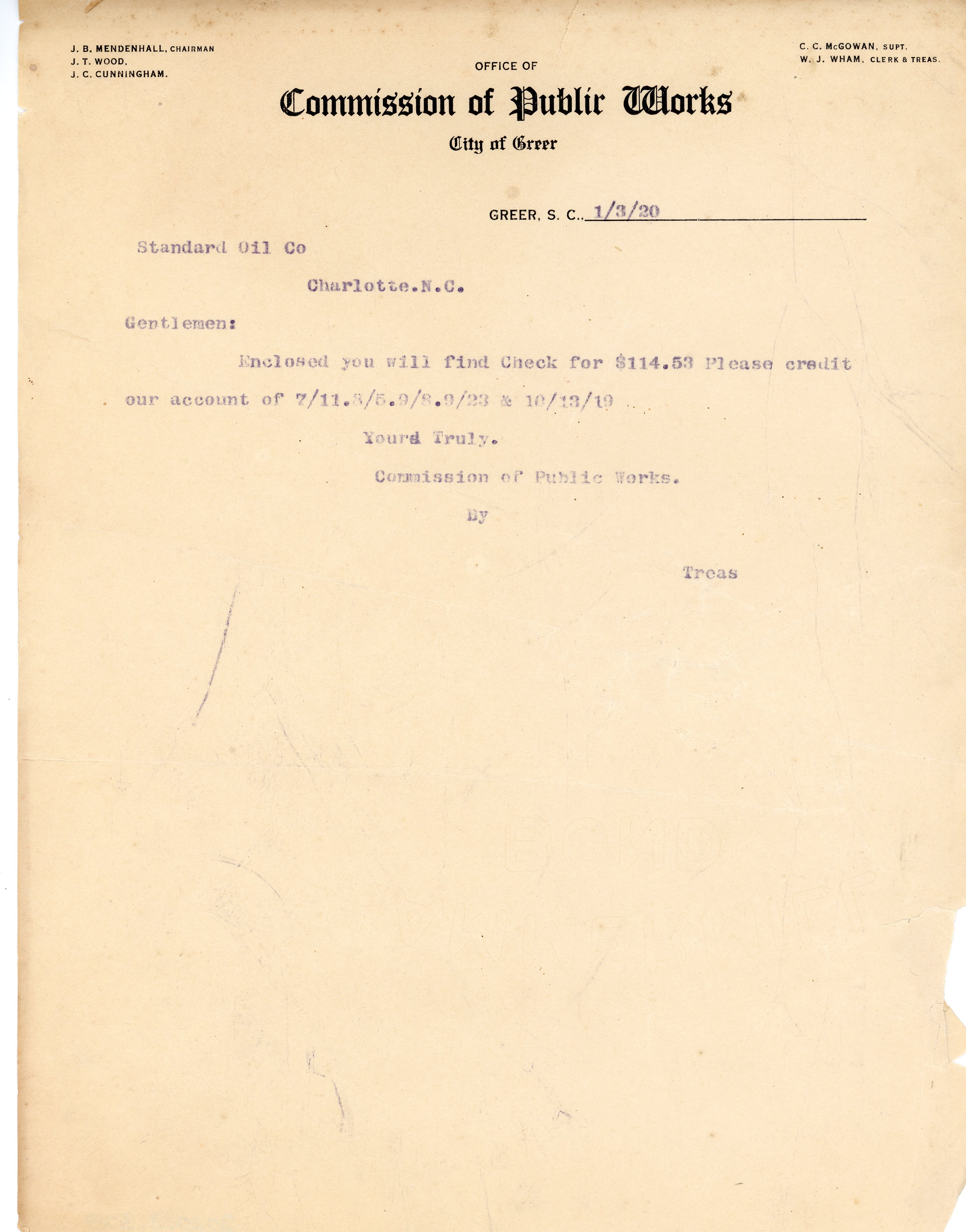 - Letter 3 January 1920 W. J. Wham to Standard Oil Co.