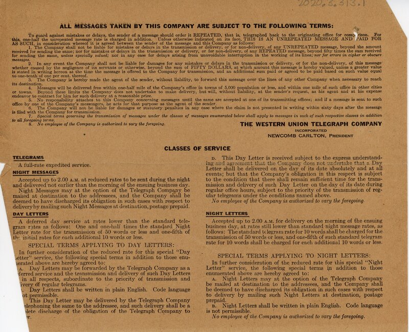 - Telegram 20 February1920 Southern Coal and Coke Co. to L. L. White