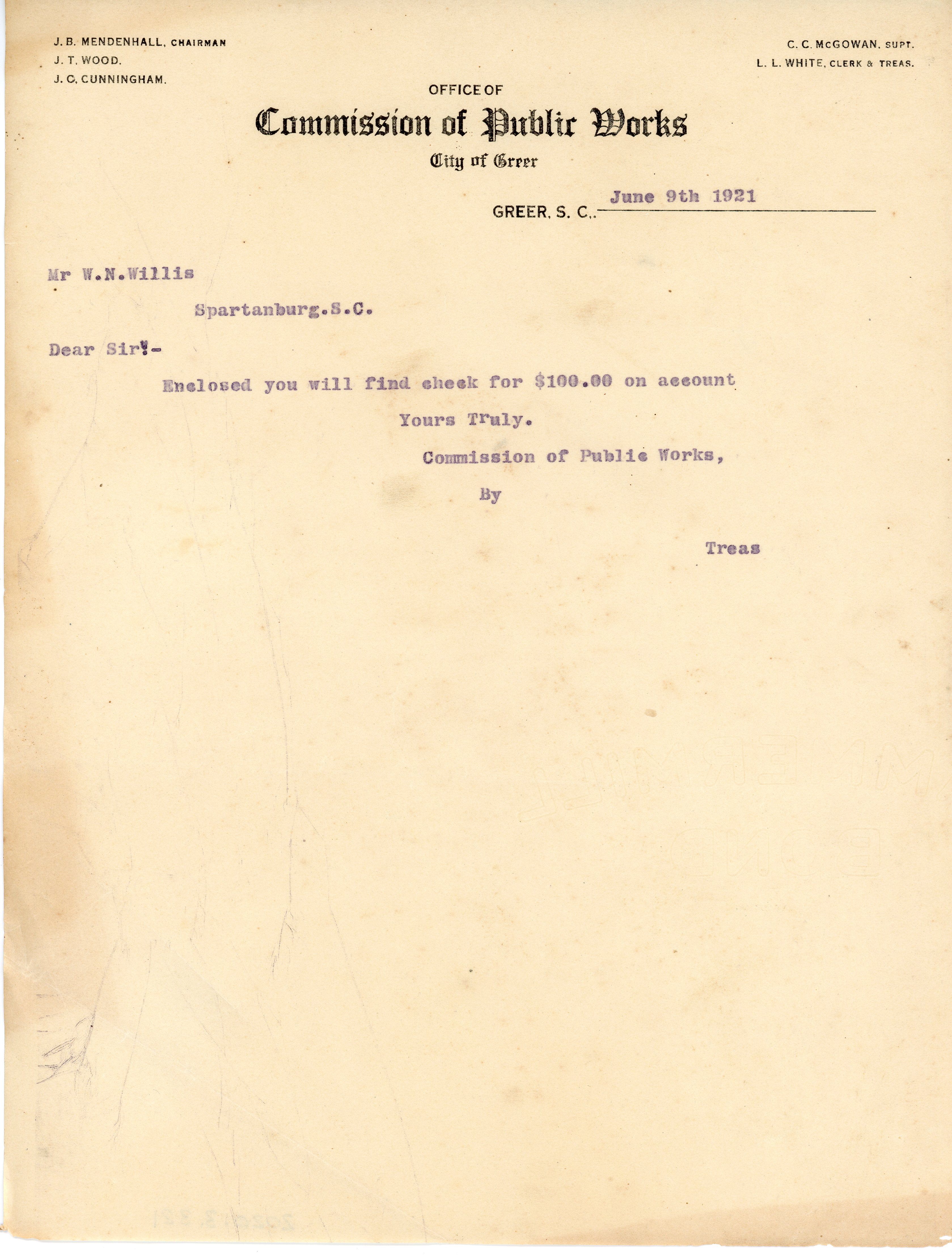 - Letter 9 June 1921 L. L. White to W. N Willis