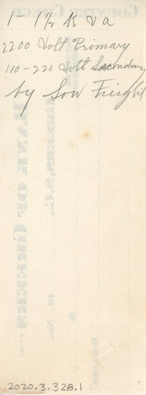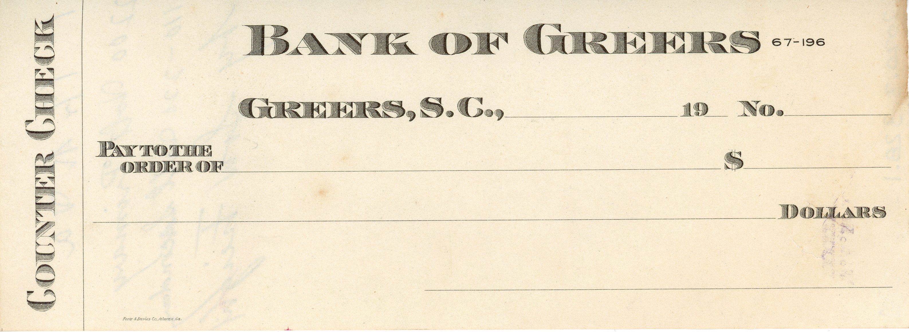 - Bank of Greers, Greers S. C. Blank Counter Check