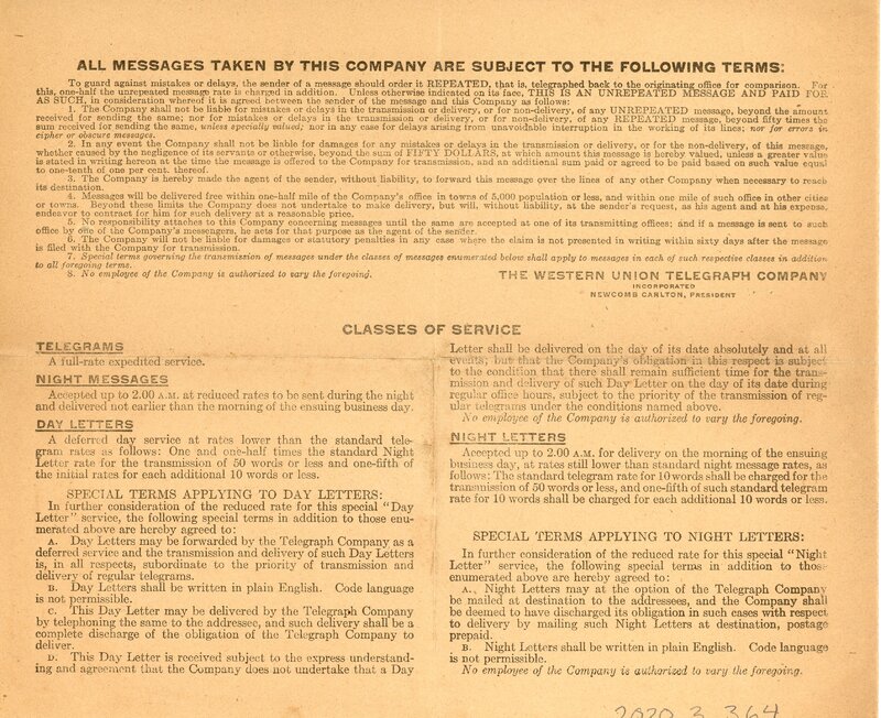 Part of Western Union Telegram General Electric Co. W. C. McGowan