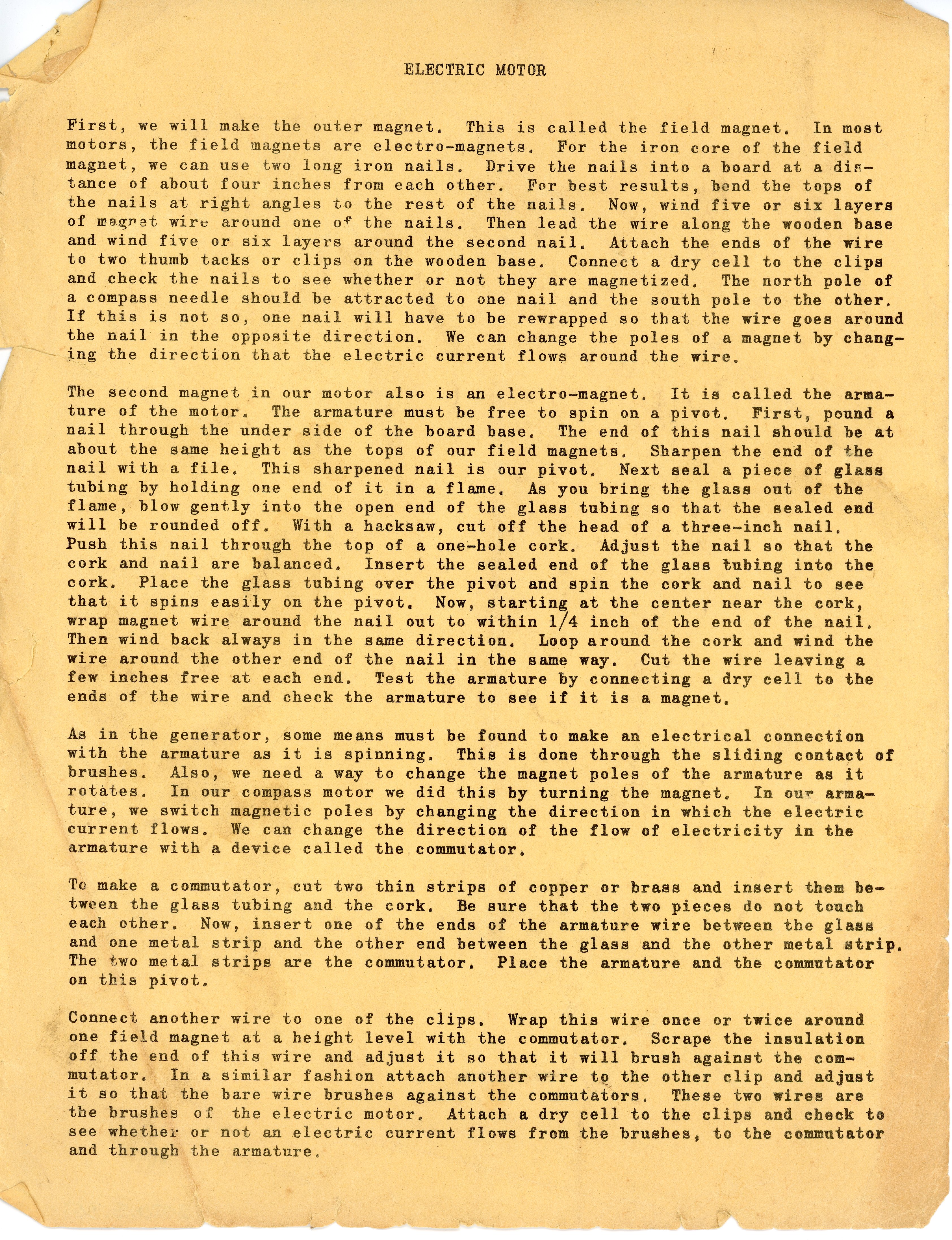 ture of the motor. The armature must be free to spin on a pivor. First, pound a