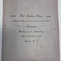 - The Ladies Store Greer, S.C Opening Invitation, March 29-30, 1906