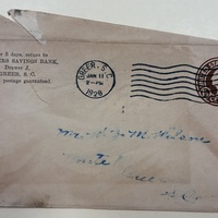 - Envelope from Planters Savings Bank, Greer S.C., to W.Z.M. Wilson, January 11, 1928