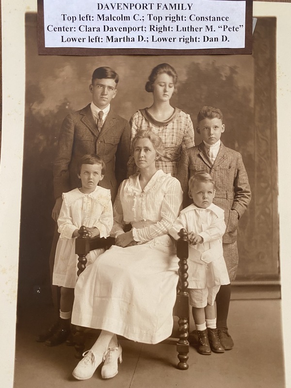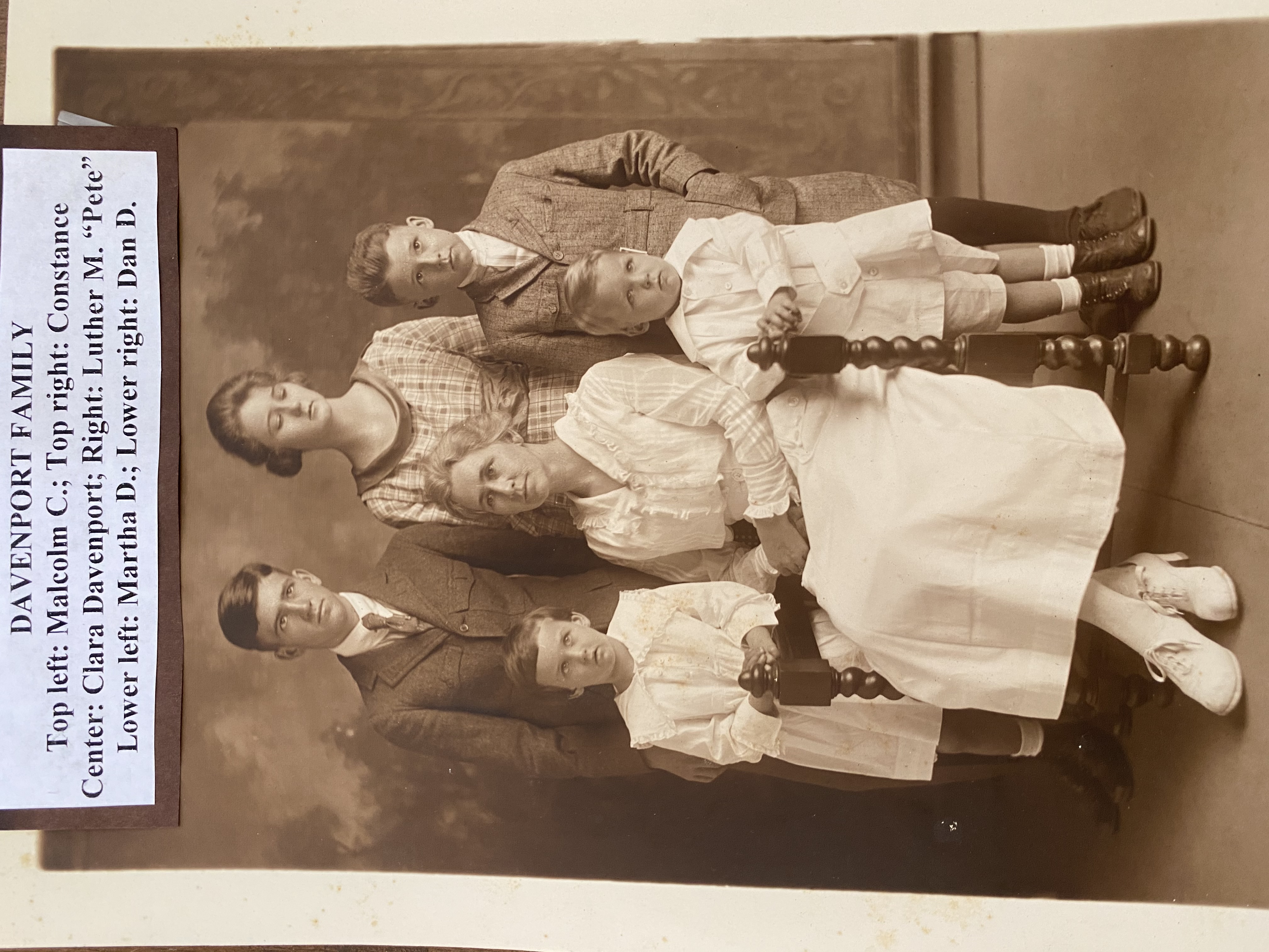 Black and White Photograph of the Davenport Family, who lived in Greer SC. Clara Davenport was the daughter-in-law of D.D. Davenport who owned the Greer Oil Mill Factory