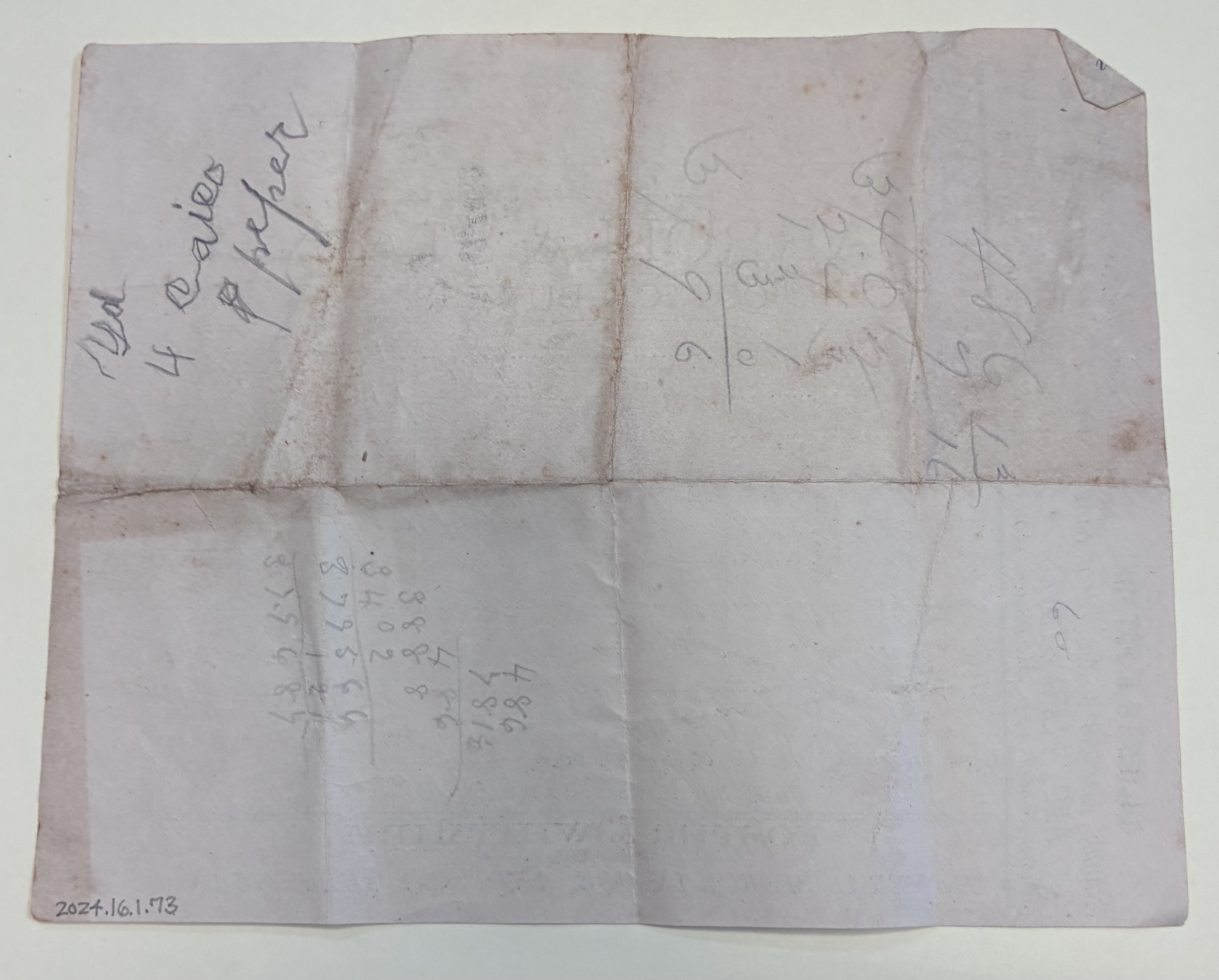 Front: 1 Bale of cotton receipt from W.Z.M. Wilson sold to Carroll & Stacy, cotton buyers, Greenville, S.C., April 10, 1886