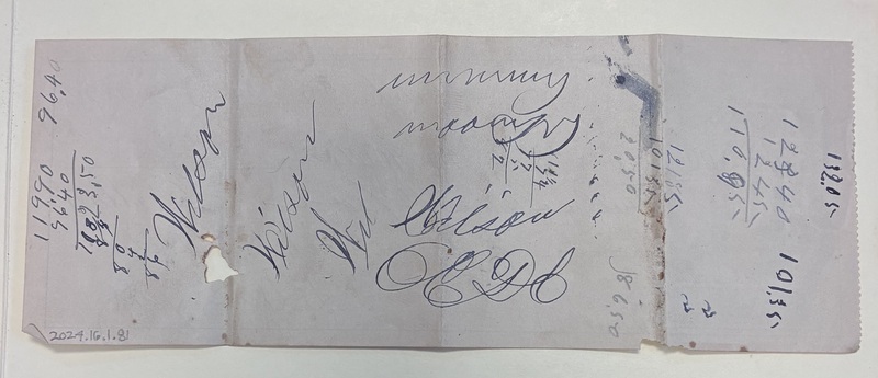 Part of Check from D.D Davenport to W.Z.M Willson, September 27, 1890