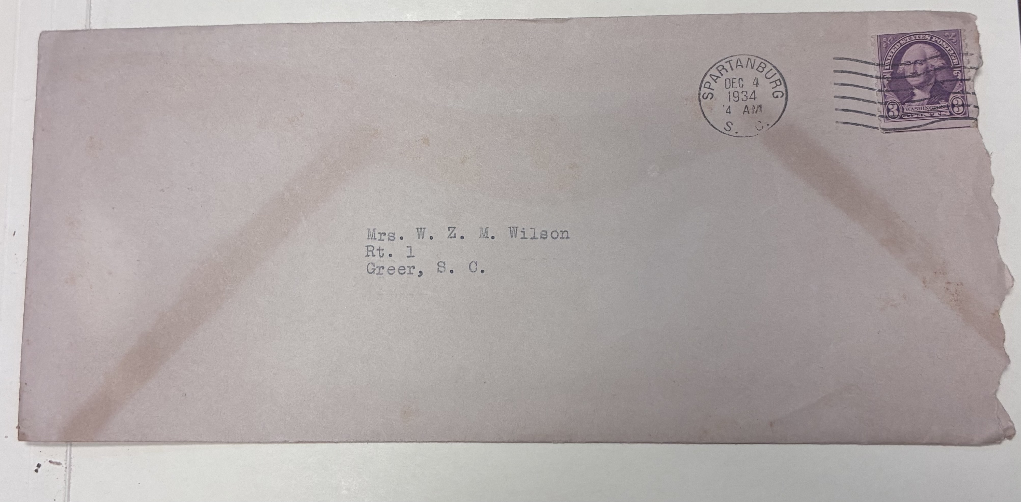 97.1. Envelope to Mrs. W.Z.M. Wilson, Greer, S.C.