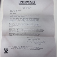 Envelope, Letter, and Check from Phoenix Furnite Company to Mrs. W.Z.M. Wilson, Spartanburg, S.C., December 3-4, 1934