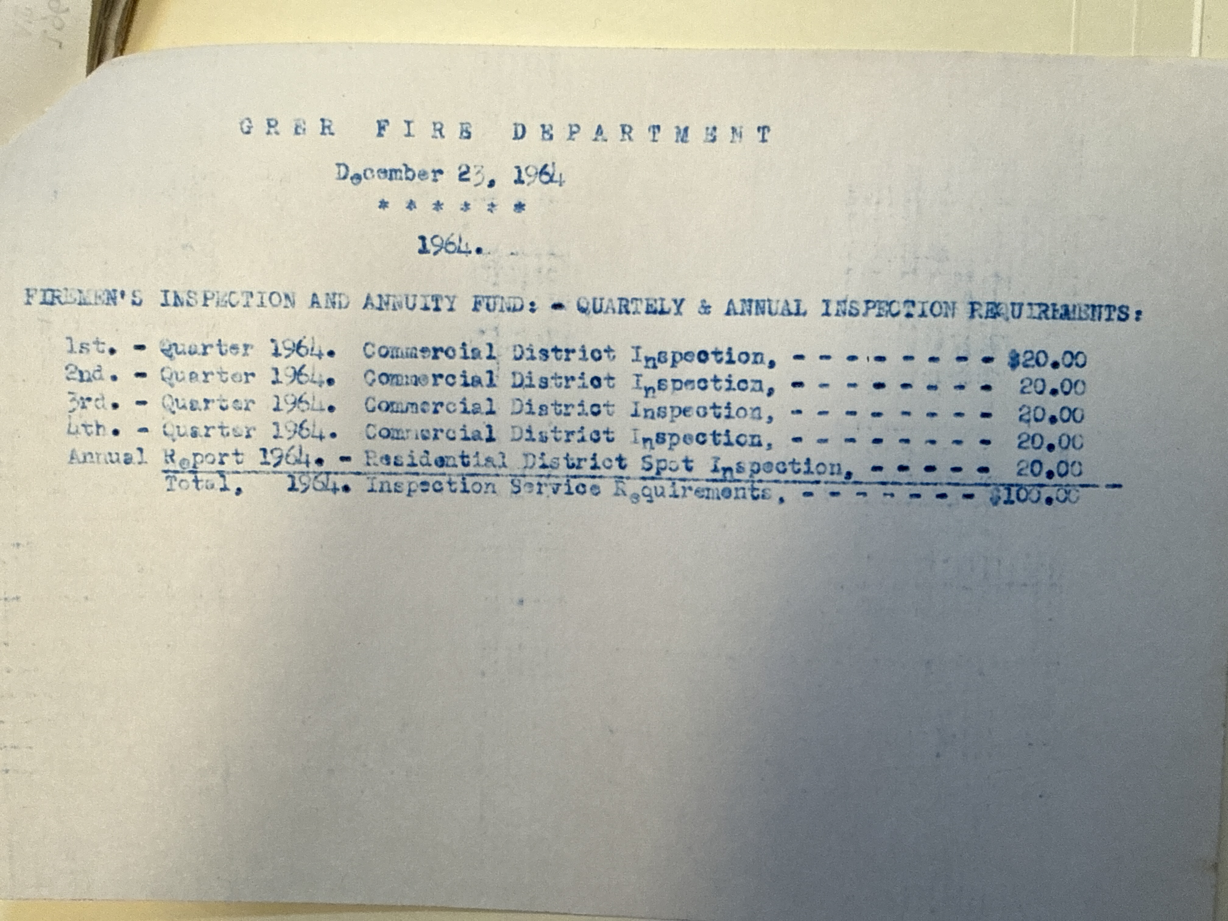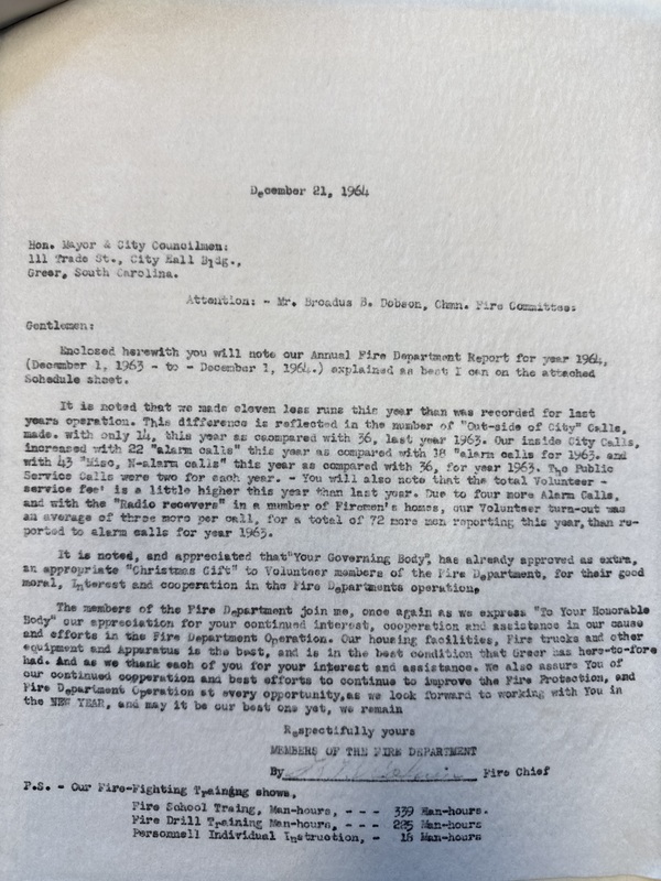 Part of 1964 Greer City Firemen