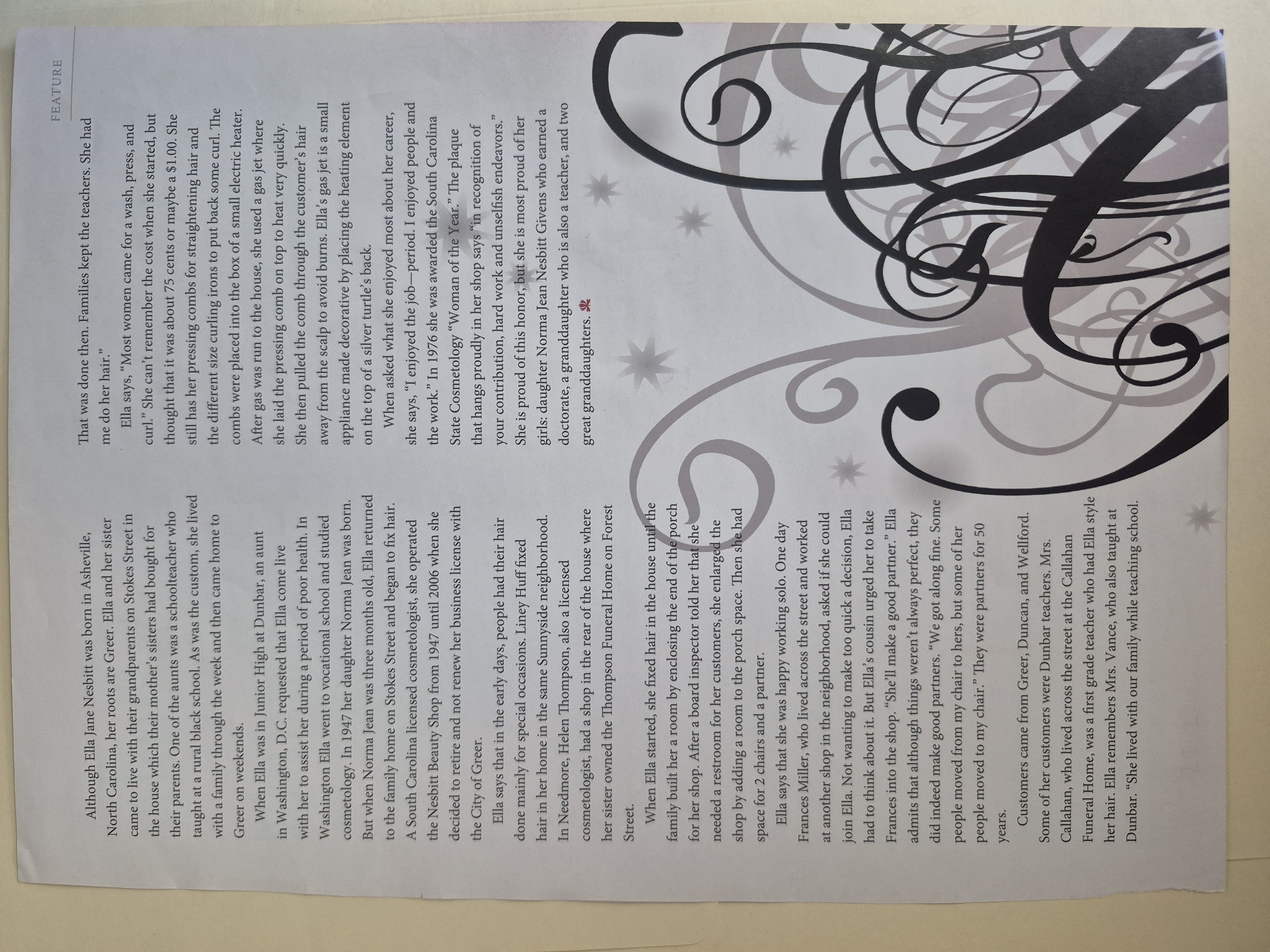 Part of "At Ella's" Magazine Article