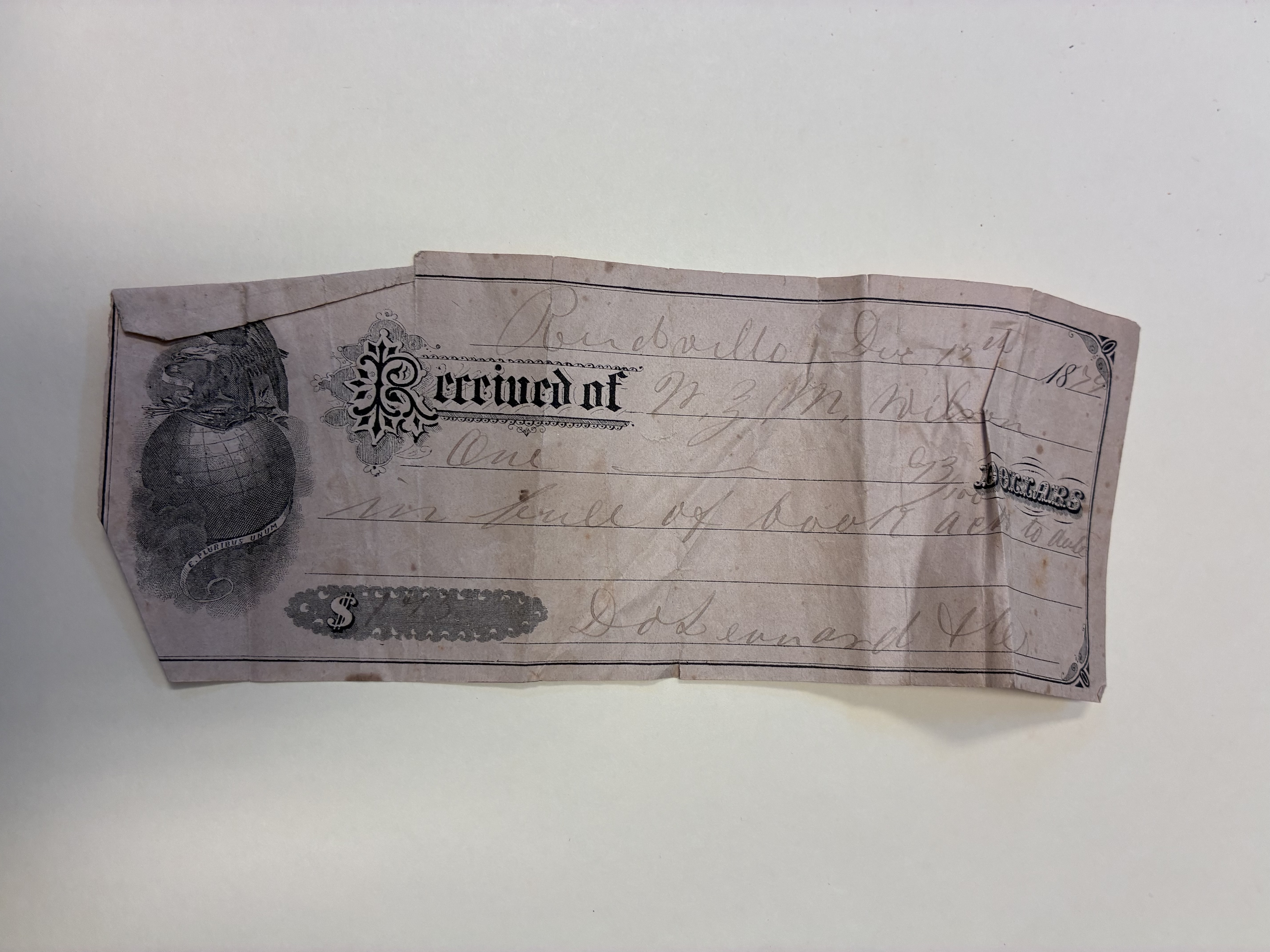 Part of D.O. Leonard & Co. Receipt, Reidville, S.C., December 13, 1879