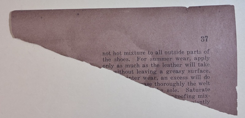 Corner piece of pages 37 and 38 Instructions on the care of leather shoes on page 37 Camera mentioned on page 38