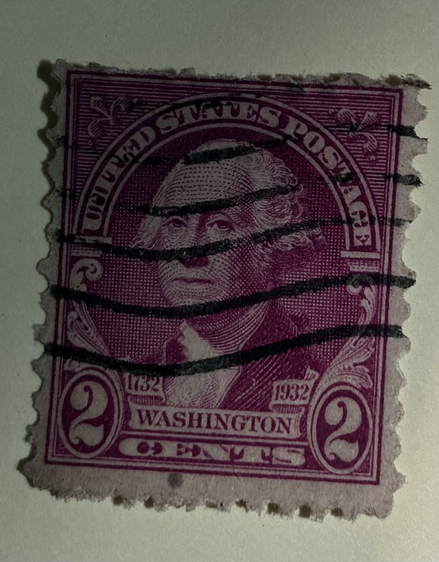 Used 2 Cents US Postage Stamp Red with George Washington on it