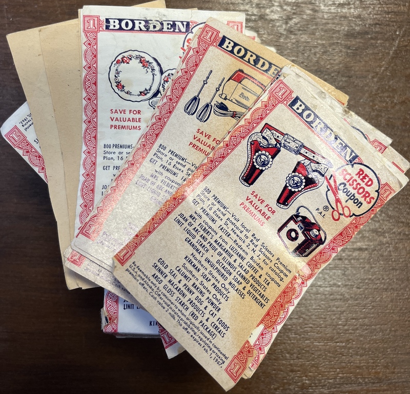 A stack of Borden Red Scissors Coupons
