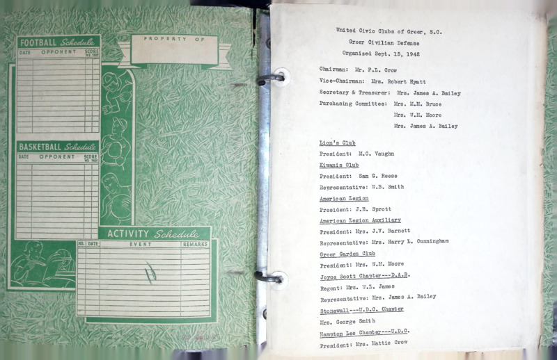 United Civic Clubs of Greer 1942 Notebook