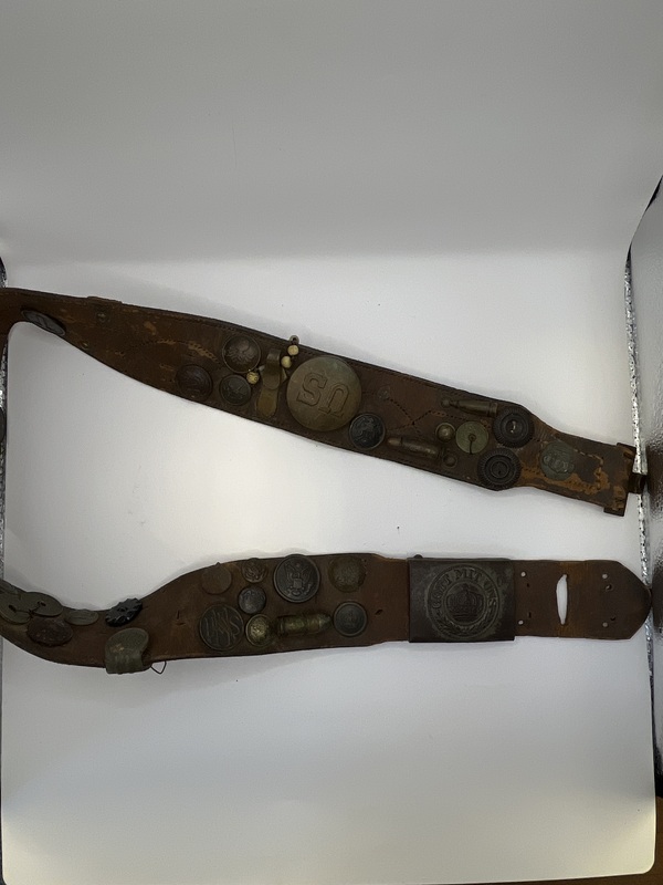 Military Belt with many insignias that was owned by James Wilson Sr. from World War I