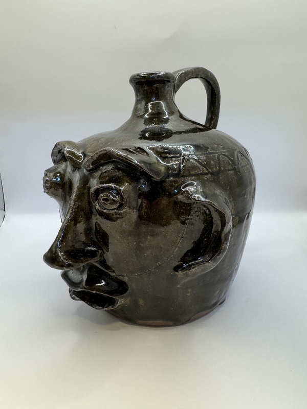 Face Jug made for a showing at the McKissick Museum, pottery made by Billy Henson. Inscription: Billy Henson Lyman SC Alkaline Glaze Wood-Fired MM