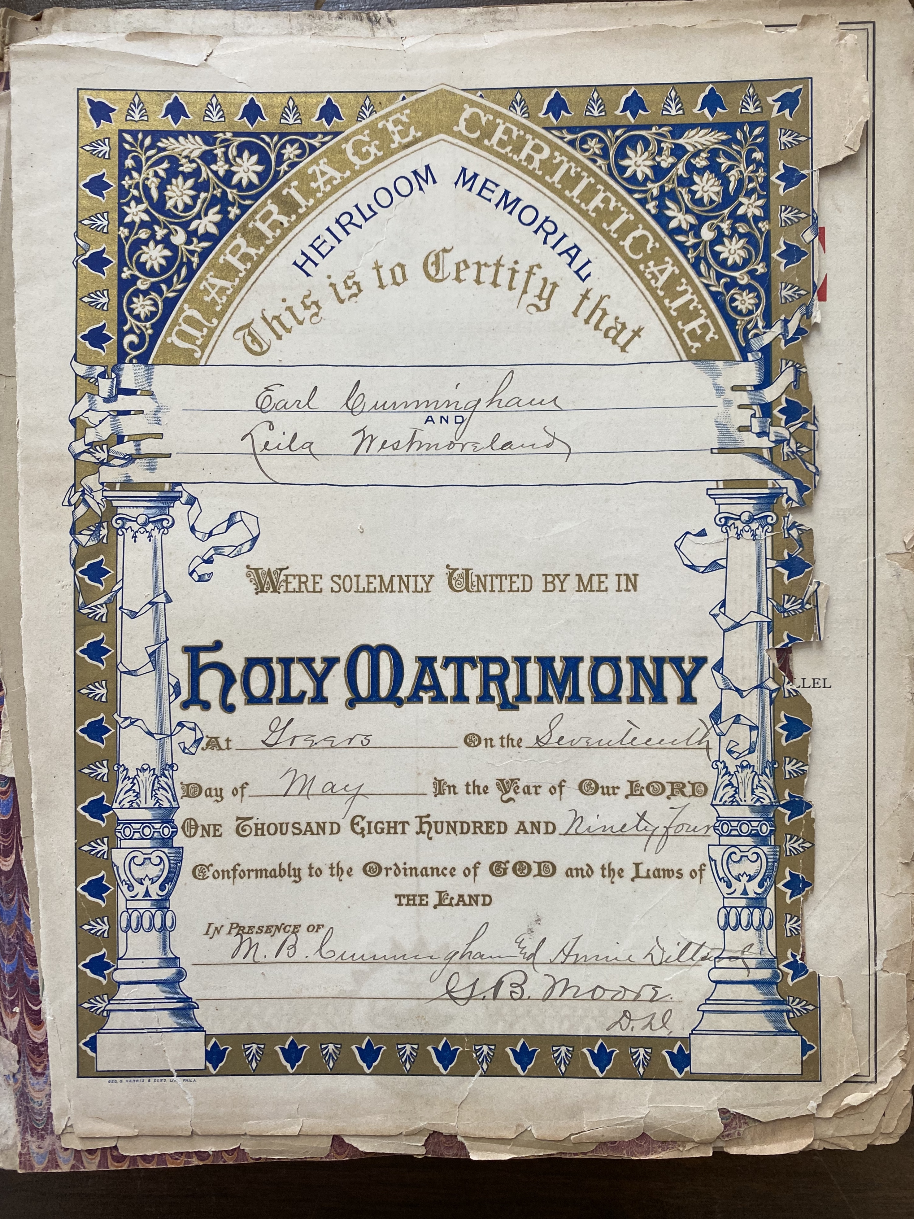 Leila Cunningham was the grandmother of Sara Ann Lanford, the creator of the scrapbook 2020.1.1.