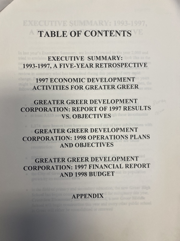 Part of Greater Greer Development Corporation Annual Report 1997