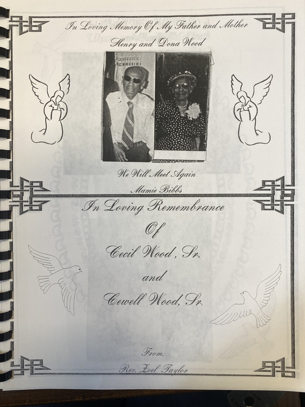The book contains a brief history of the church, a Sunday Service outline, and memories of those who have died. - Creator