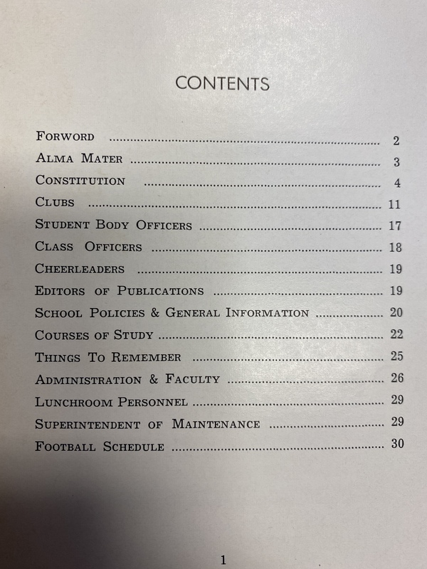 James F. Byrnes High School Handbook from 1959-60.