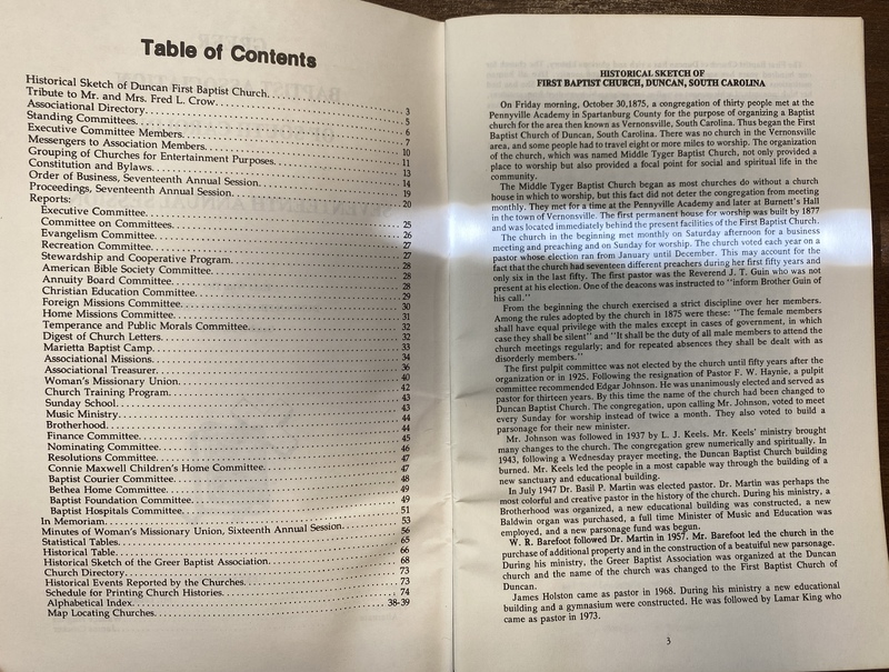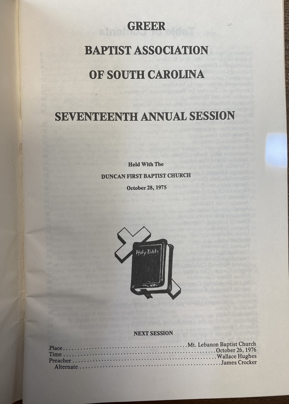 Part of Greer Baptist Association 17th Annual Session Program