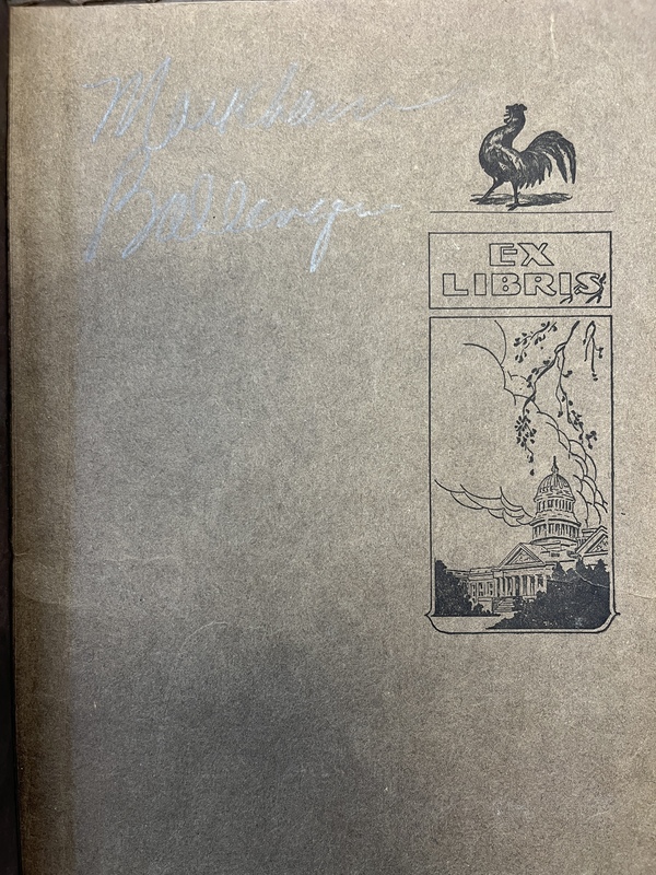 The name Markham Ballenger is written on the first page next to the school symbol. - Creator