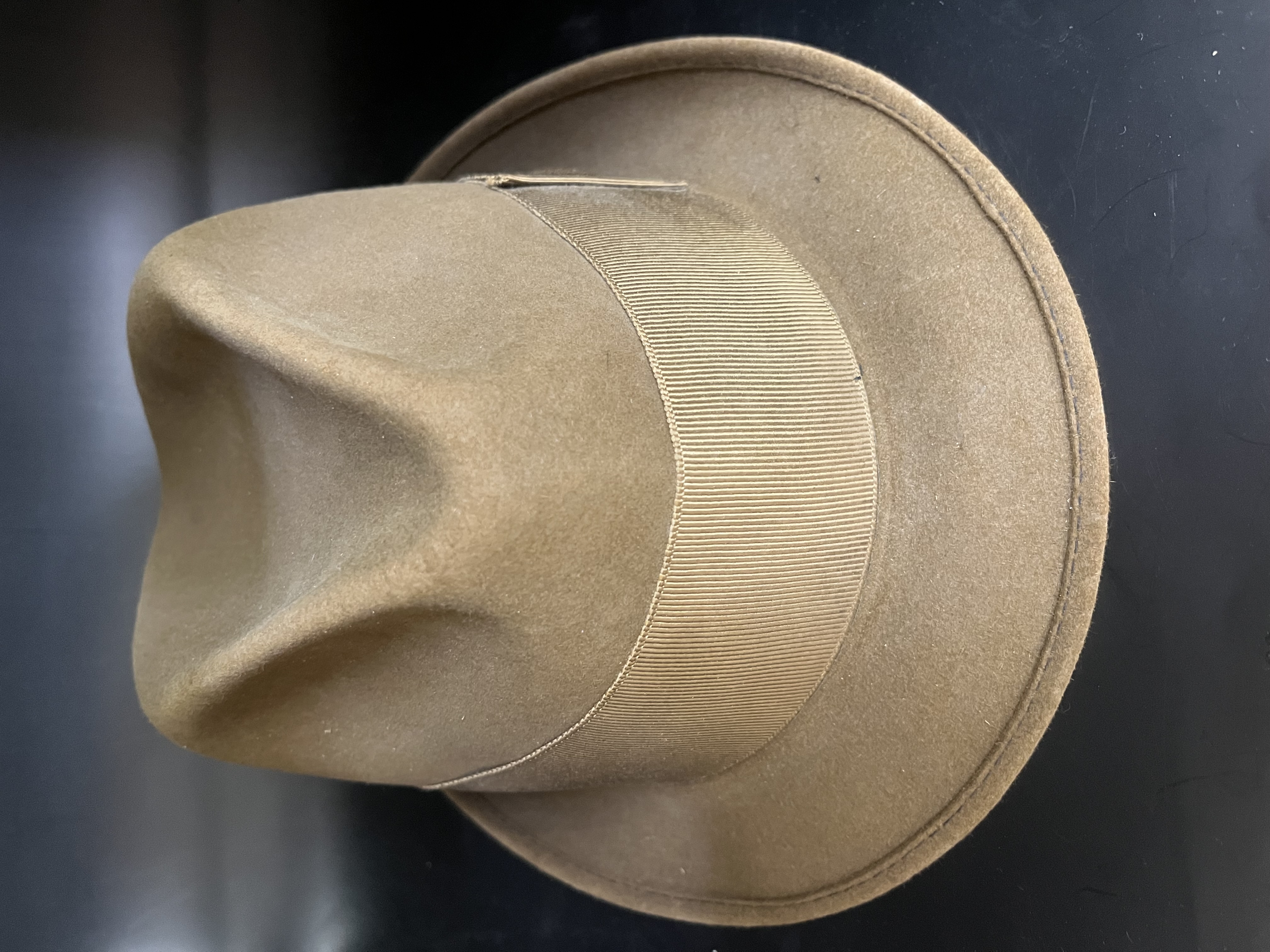 - 1940s Men's Hat that belonged to John Thomas Dillard that he bought at Stanley's Men Shop that was located on E. Poinsett Street