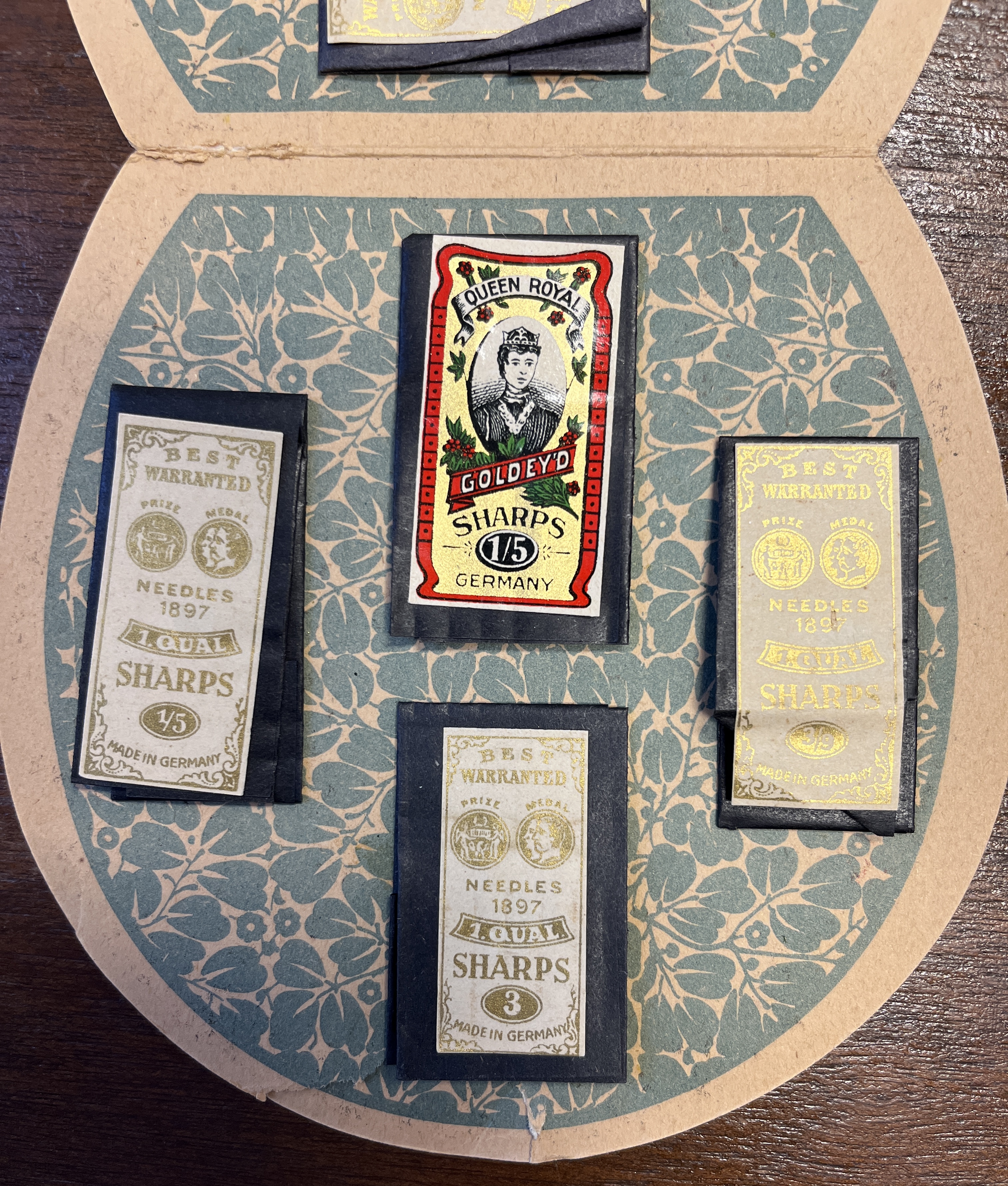 - Prize Medal Needle Assortment that has several different sized needles used for different sewing needs. These needles were made in Germany