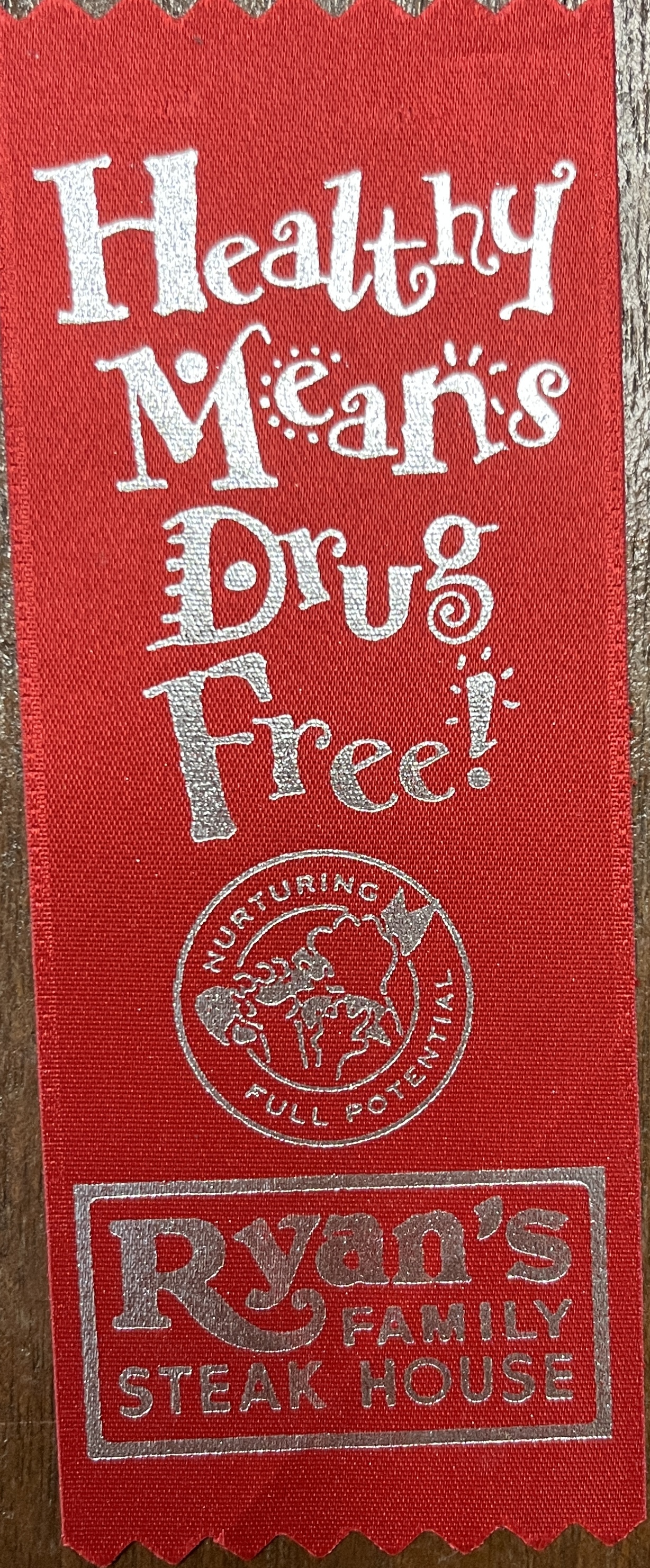 - Ryan's Family Steak House Ribbon for the Healthy Means Drug Free program. This ribbon is from the Ryan's Family Steak House in Greer that was torn down