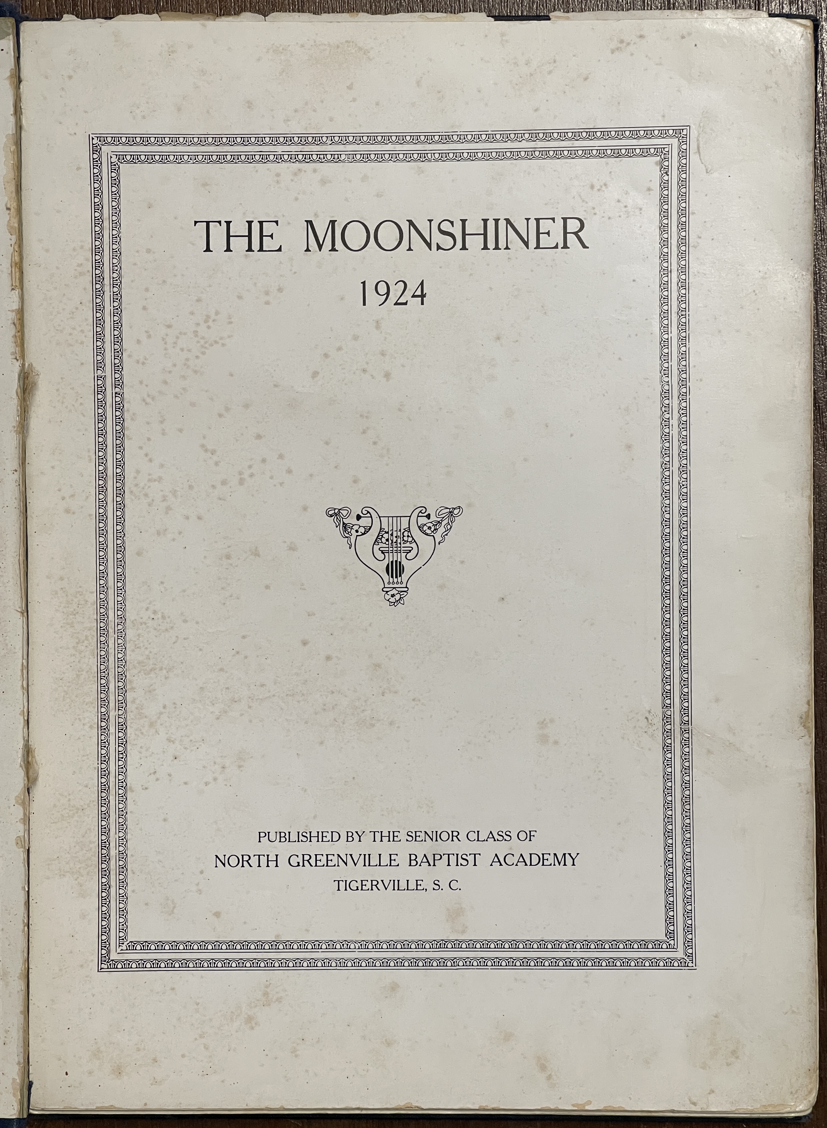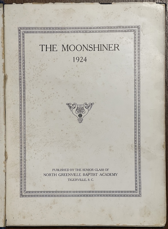 - 1924 North Greenville Academy Yearbook titled "The Moonshine"
