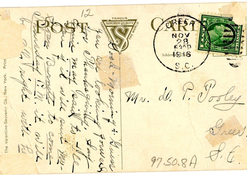 Guess you are looking forward for Thanksgiving. Say Annie May said to tell you if it will suit Mr. Sloan Burnett to come Thursday P. M. it will be all right with he