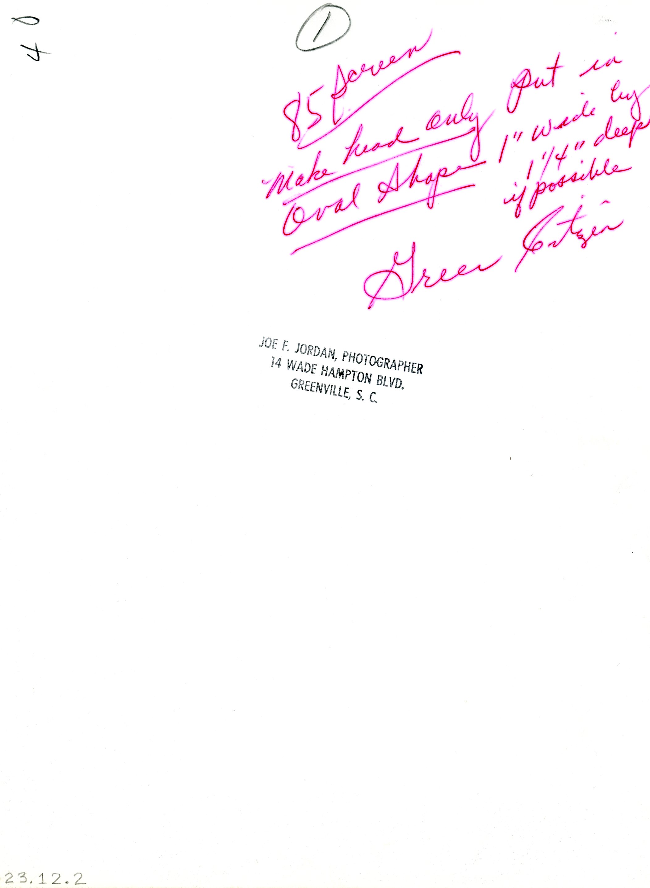 - Photograph of 1961 Peach Queen Phyllis Parker including measurements to be circulated to news media. Photographed by Joe F. Jordan.