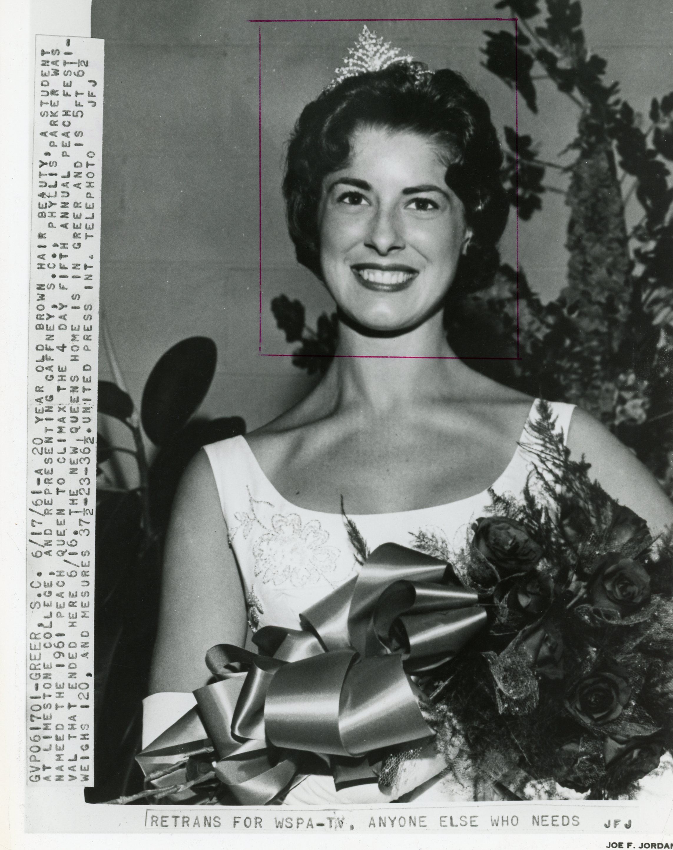 - Photograph: 1961 Peach Queen Phyllis Parker