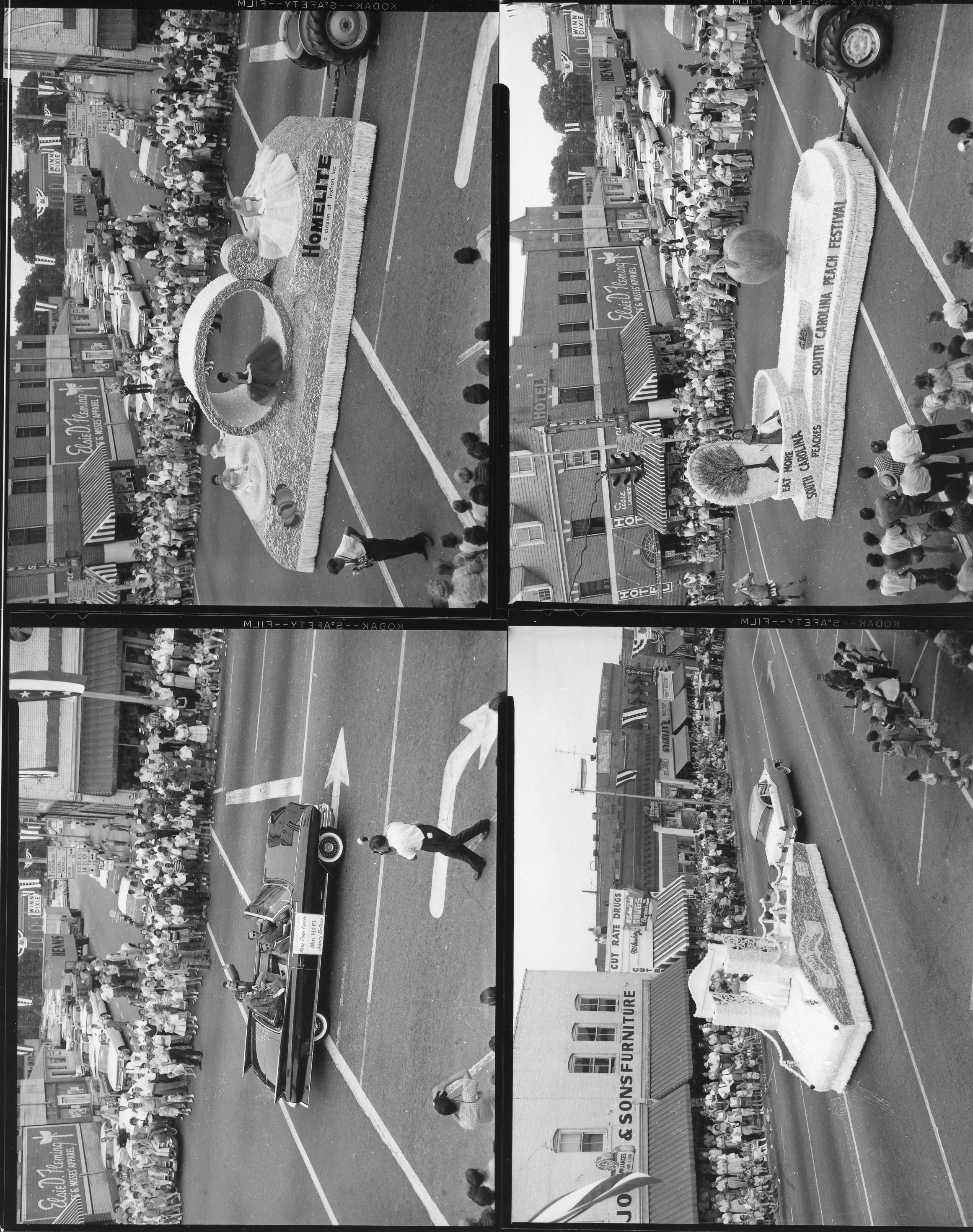 Proof sheet, 4 photos of Peach Festival parade. Photographed by Joe F. Jordan.