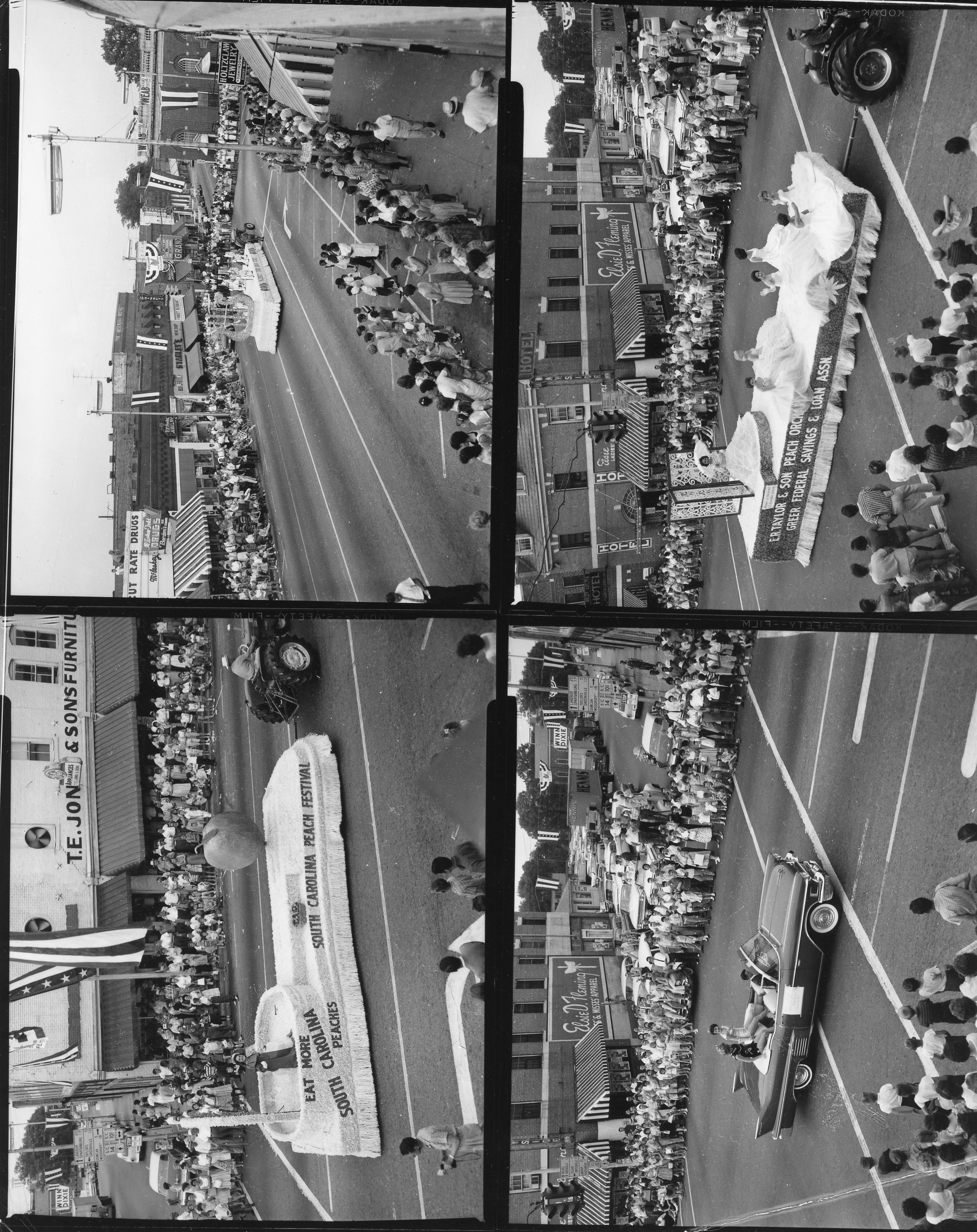 Proof sheet, 4 photos of Peach Festival parade. Photographed by Joe F. Jordan.