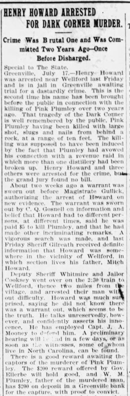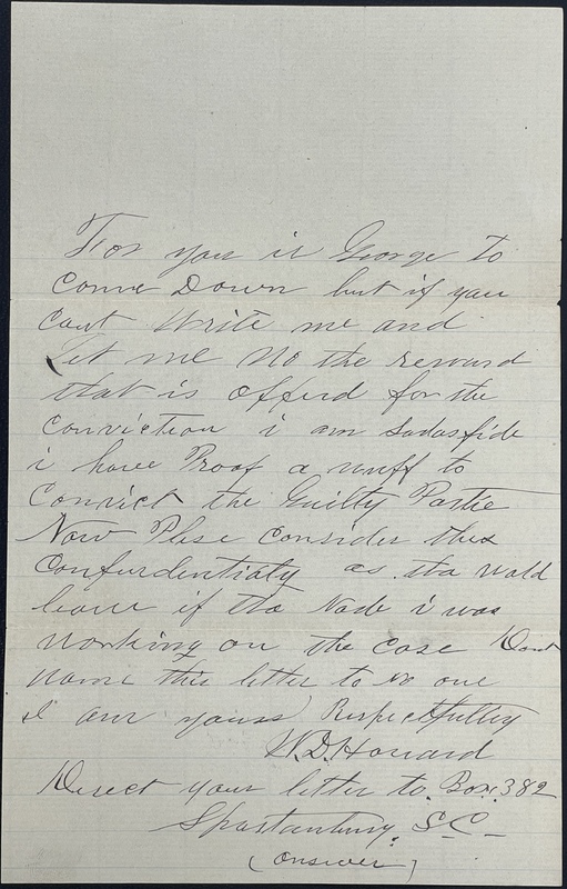 A few months after this letter, Henry Howard was arrested based on witnesses reporting that he had been bragging about the killing, and the $200 reward was claimed. - Date