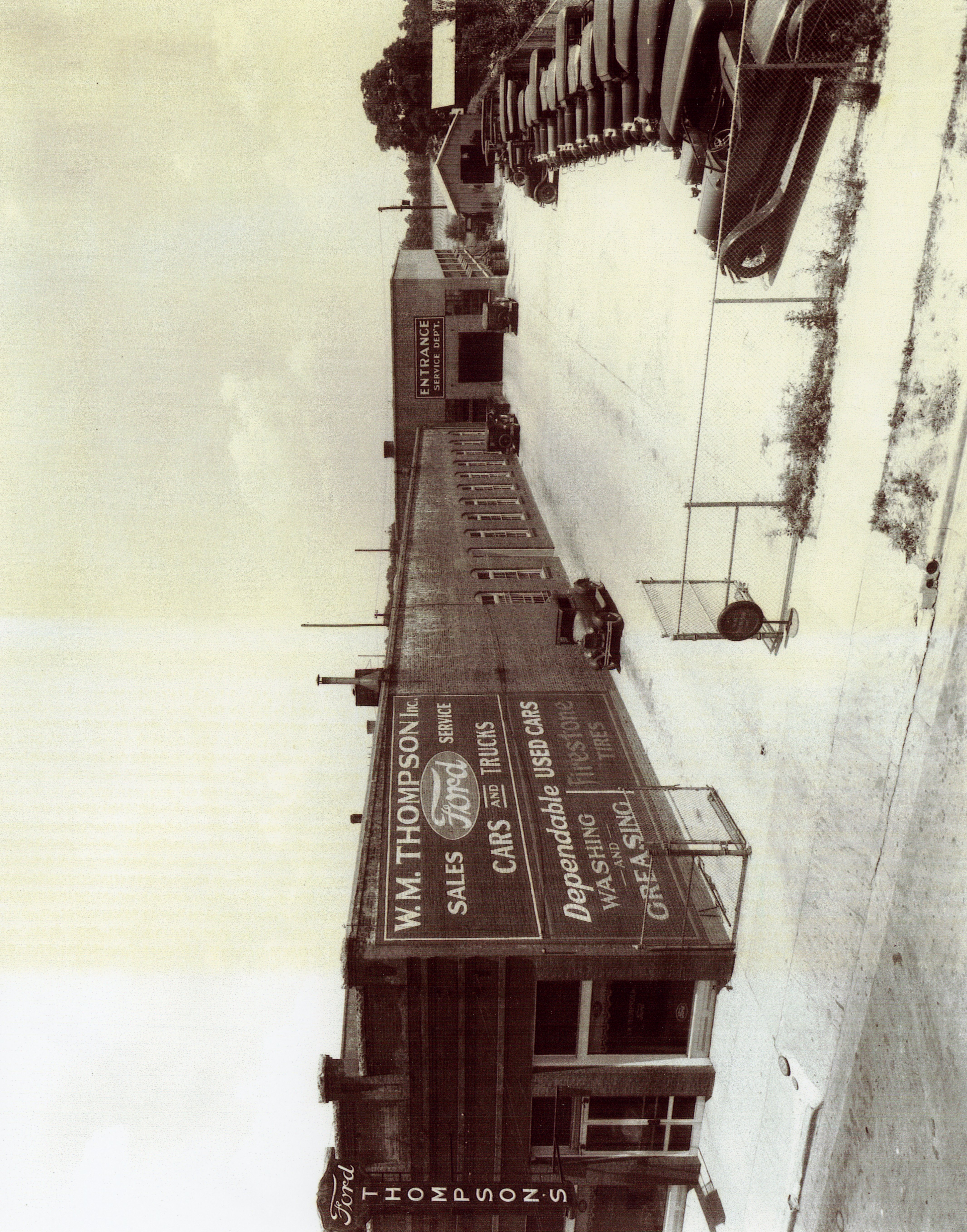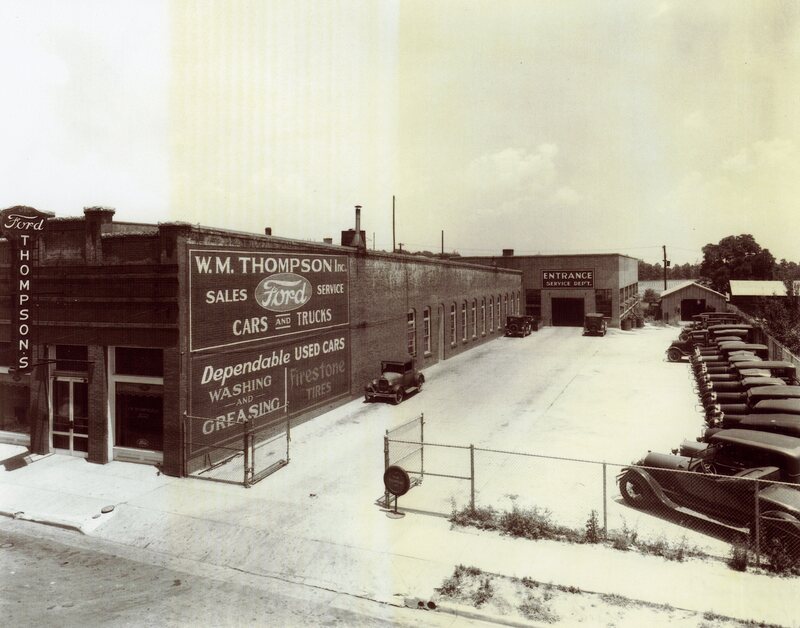 - Photograph showing W. M. Thompson, Inc, Ford dealership, located at 129 East Poinsett Street (now Grace Church; this building is currently labeled 133 above the door). The staggered front facade of the building remains, along with most of the windows down the side. Number 17 of 19 photos of Greer by Coxe Studios. Copies of originals, provided by Greenville Historical Society.