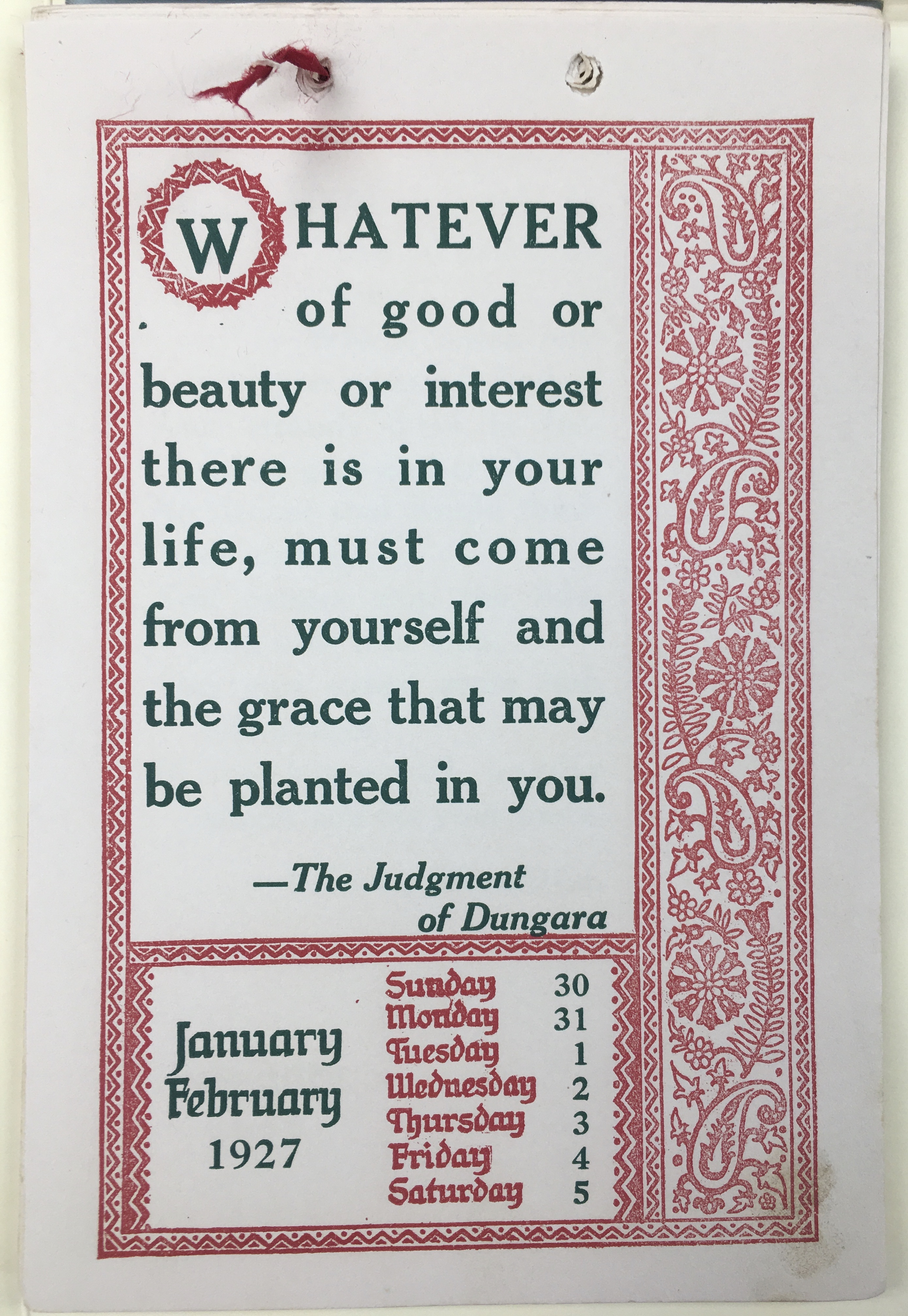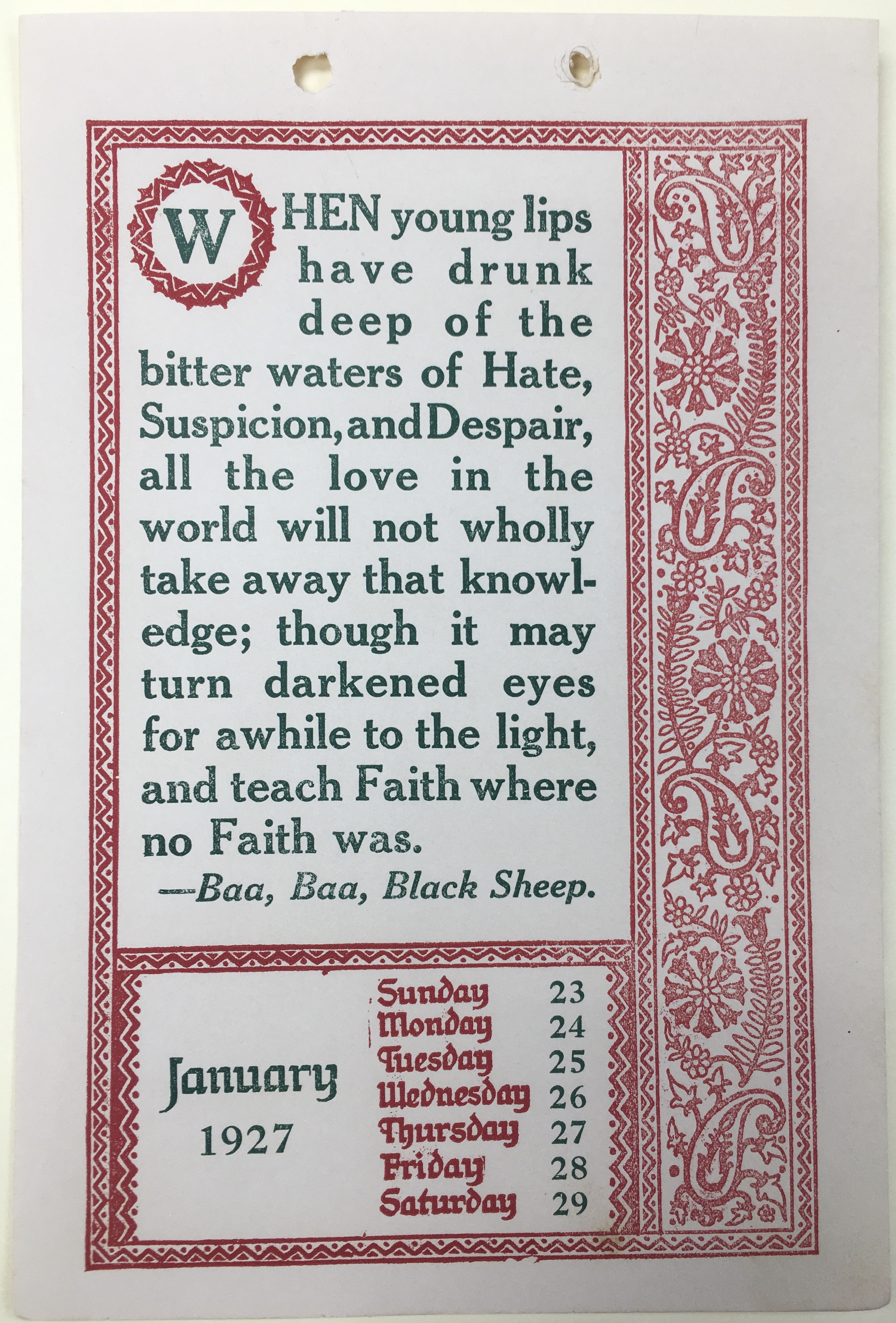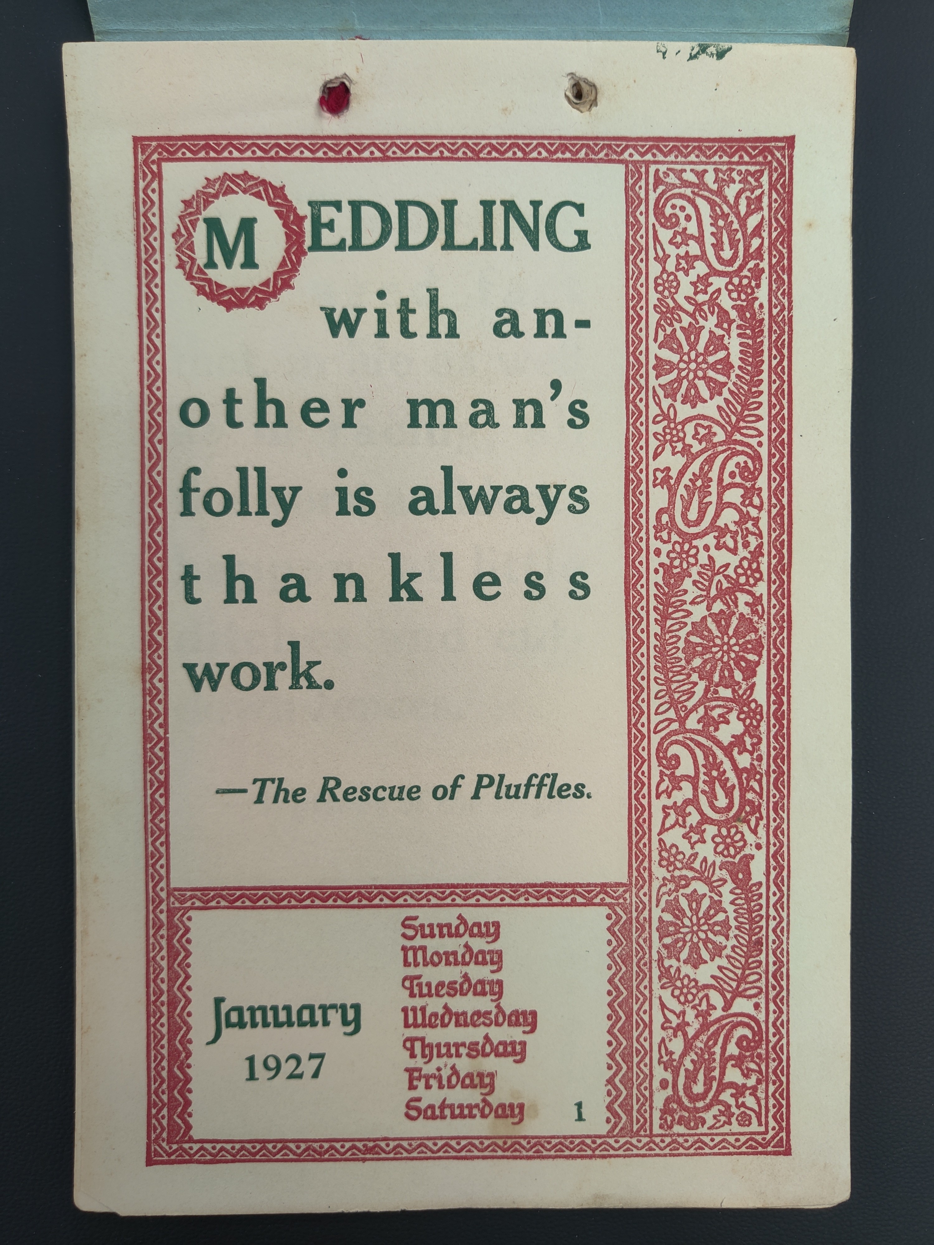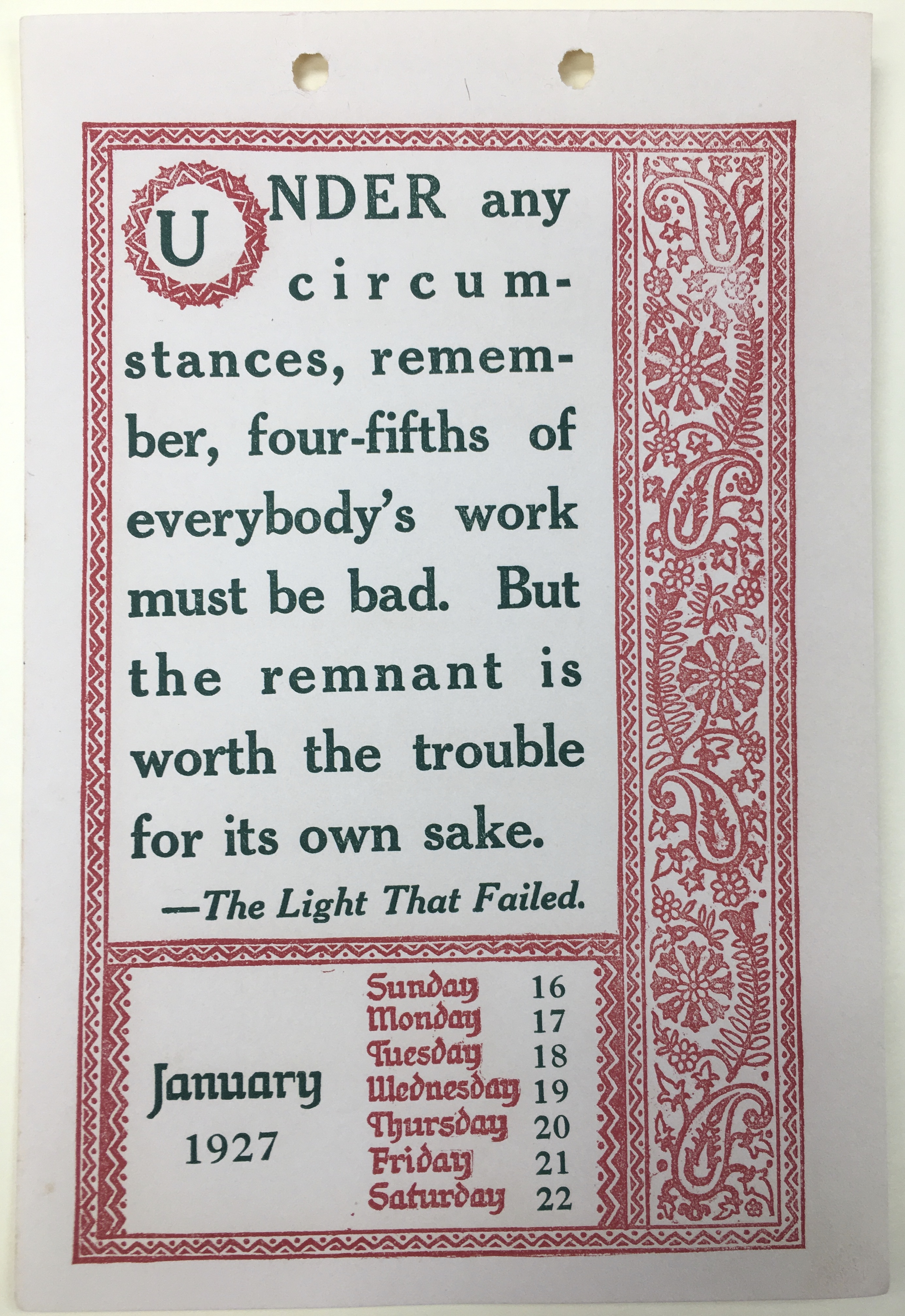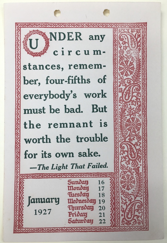 - Decorative 1927 Weekly Kipling Calendar with Kipling quotes included on each week