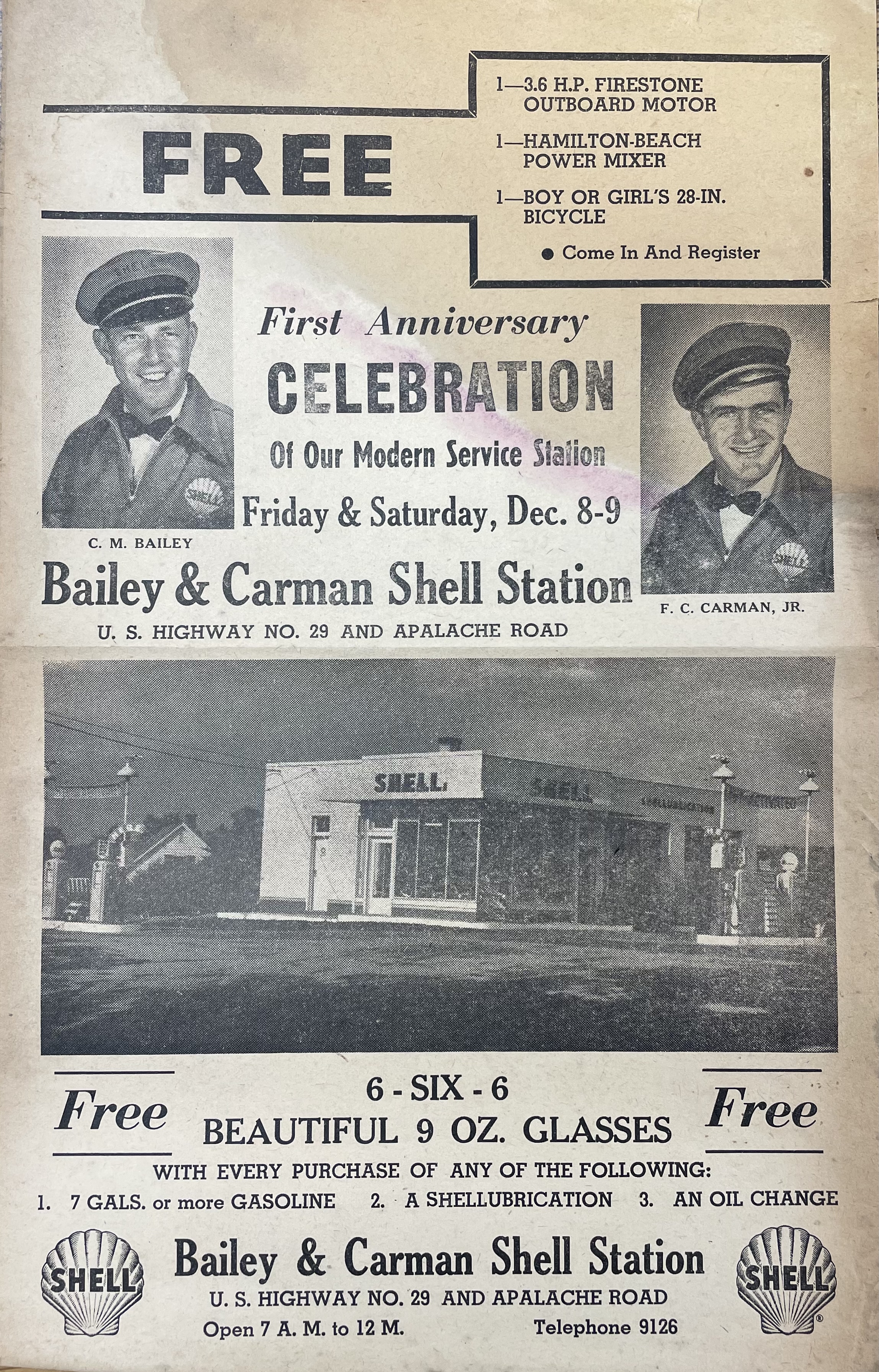 - Advertising poster/flyer for Bailey & Carman Shell Station