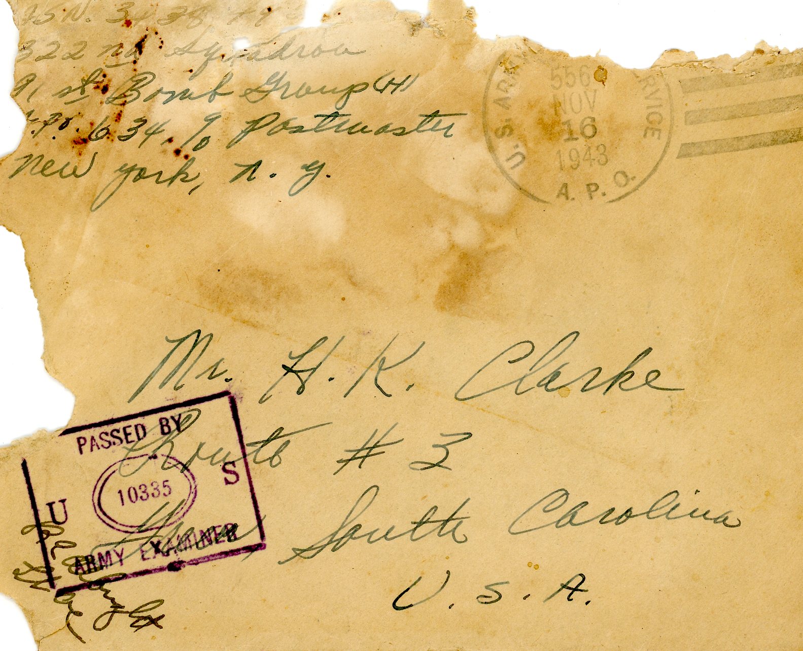 Part of Robert M. Clarke letters: envelope, William Clark to H.K. Clark, Nov. 16, 1943