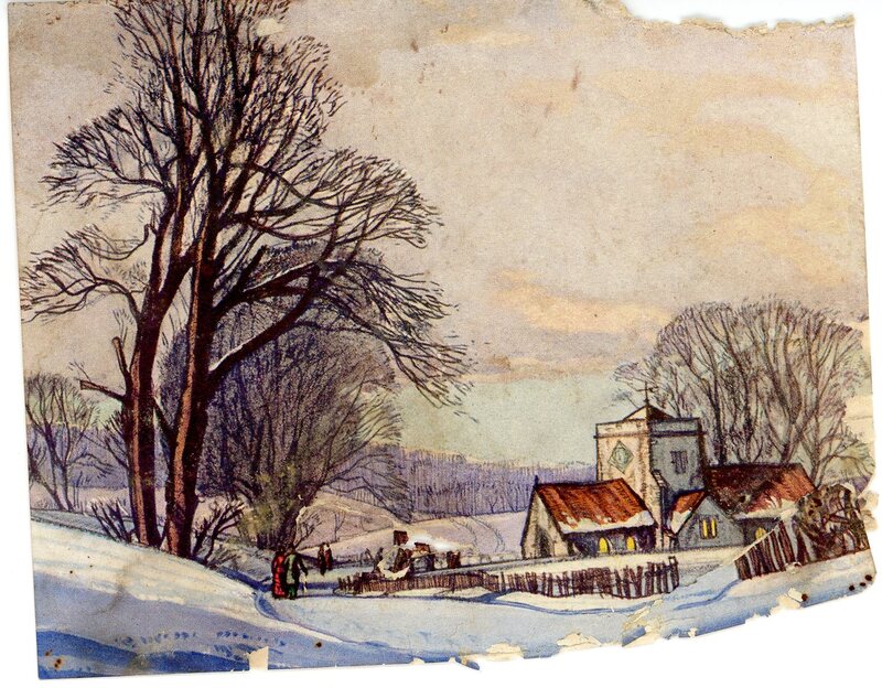 - A custom-printed Christmas card with an illustrated winter scene photograph on the front.
