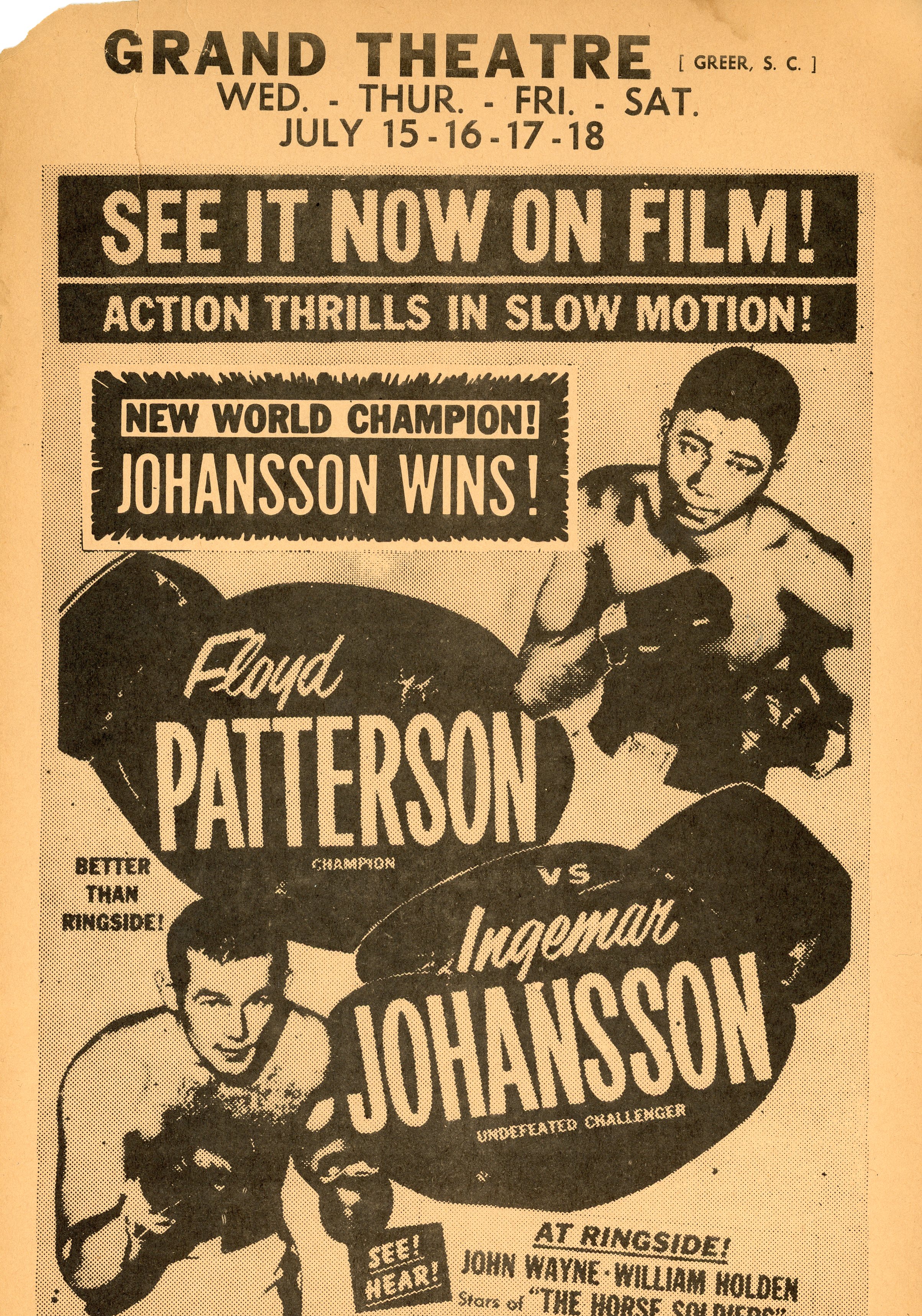 - Grand Theatre playbill for Patterson Johansson boxing match, 1959