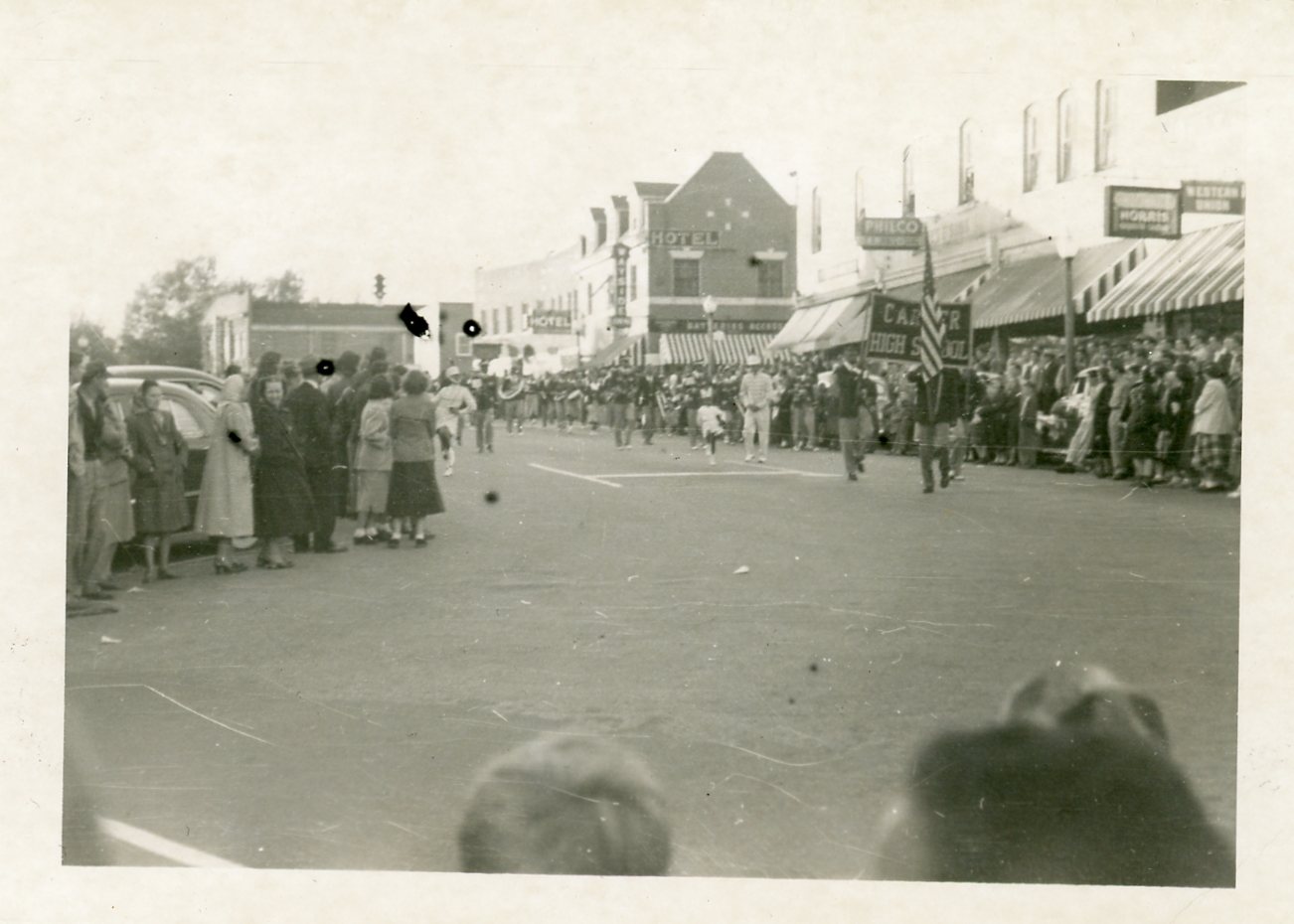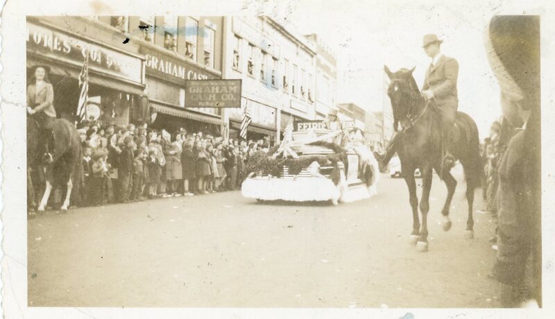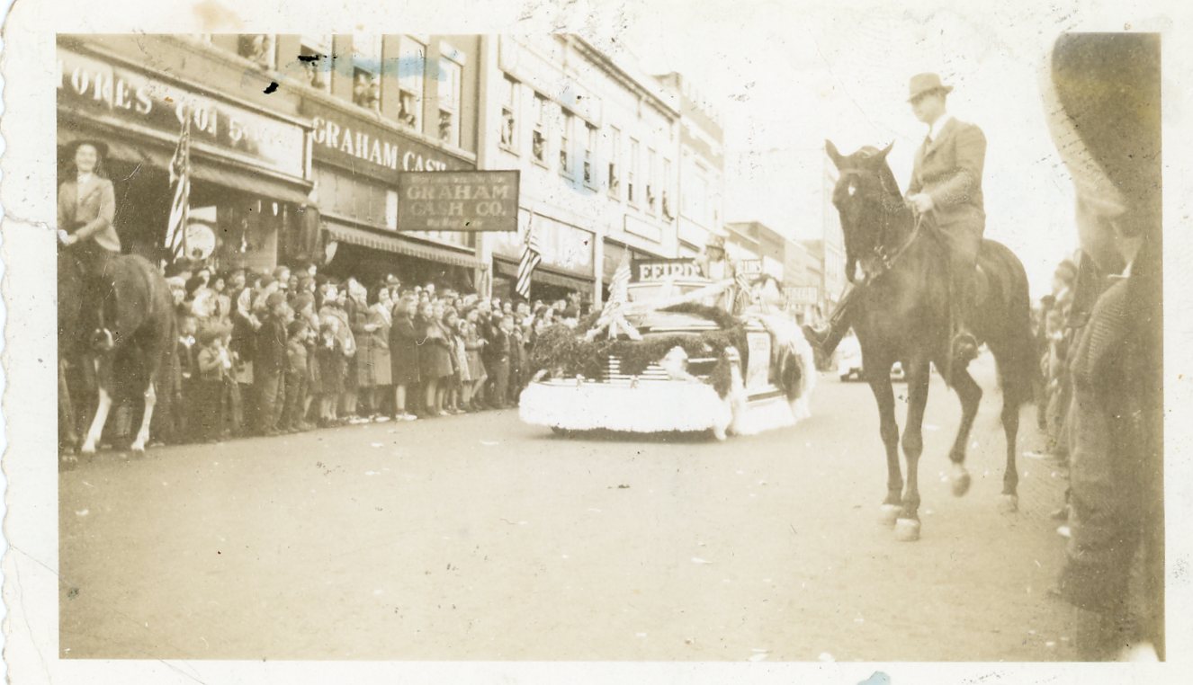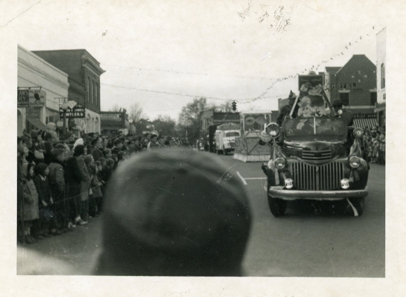 - Photographs showing the 1938 Christmas parade in Downtown Greer.