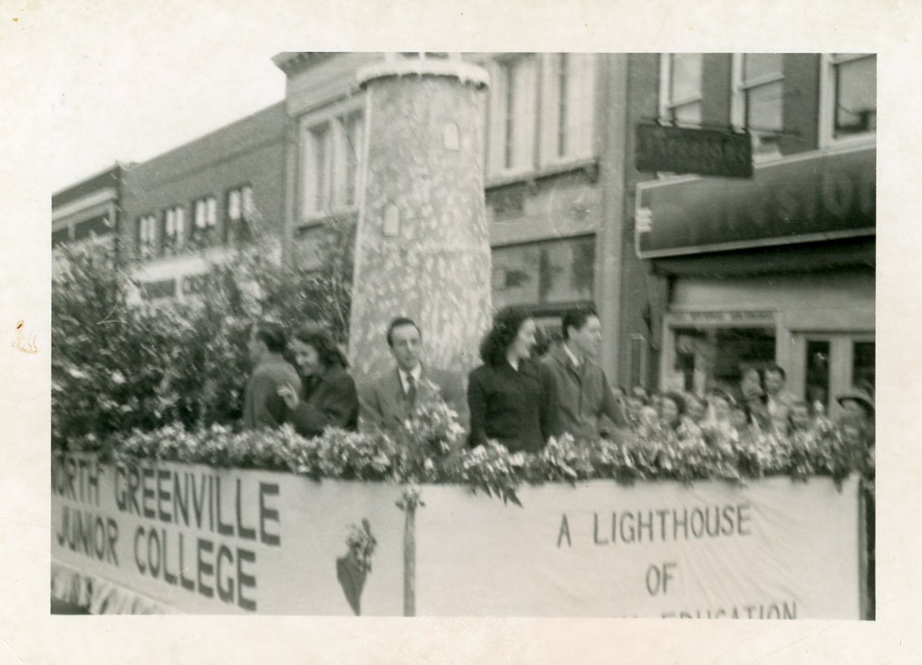 - Photographs of a 1950 parade in Greer. The photos feature Kiwanis International and North Greenville Junior College.