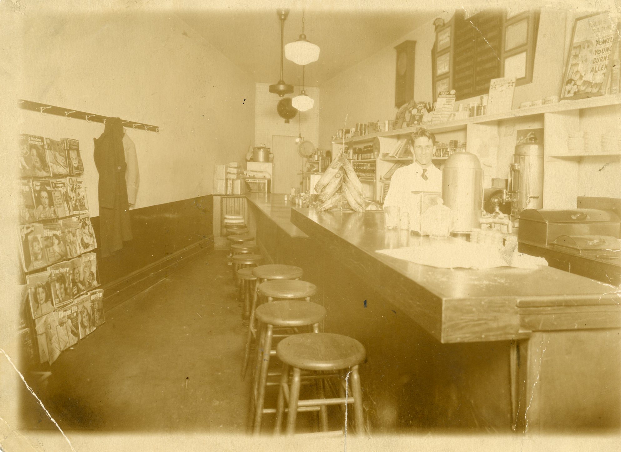 - Photograph of Praelo Howell behind the counter of the Dixie Cafe